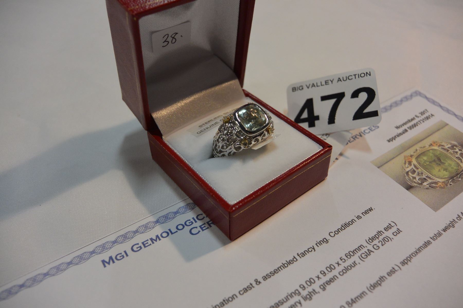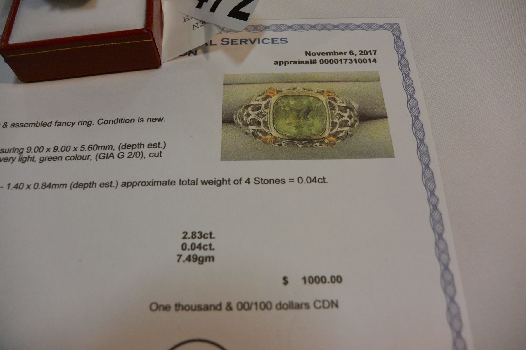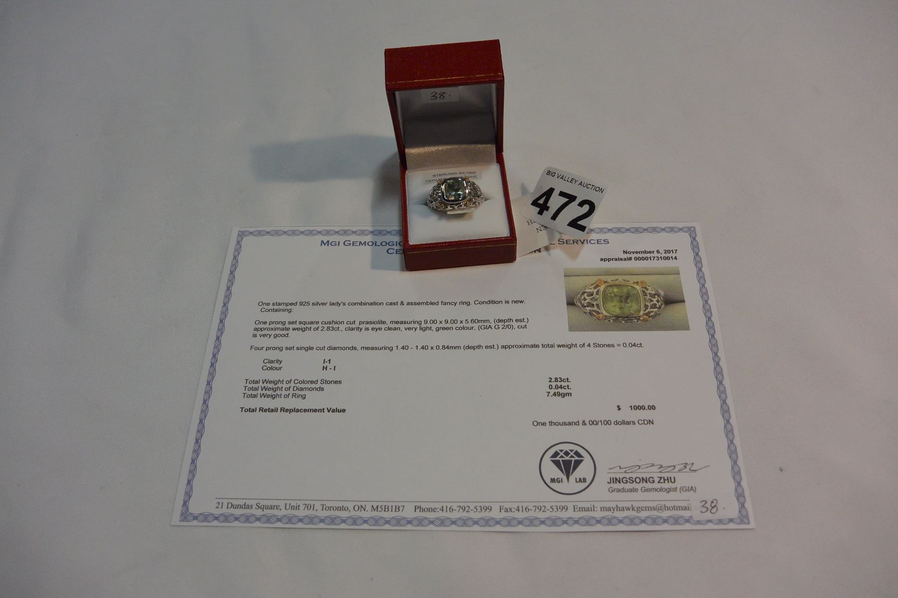 STERLING SILVER GENUINE GREEN AMETHYST AND DIAMOND RING WITH APPRAISEL $1000.00