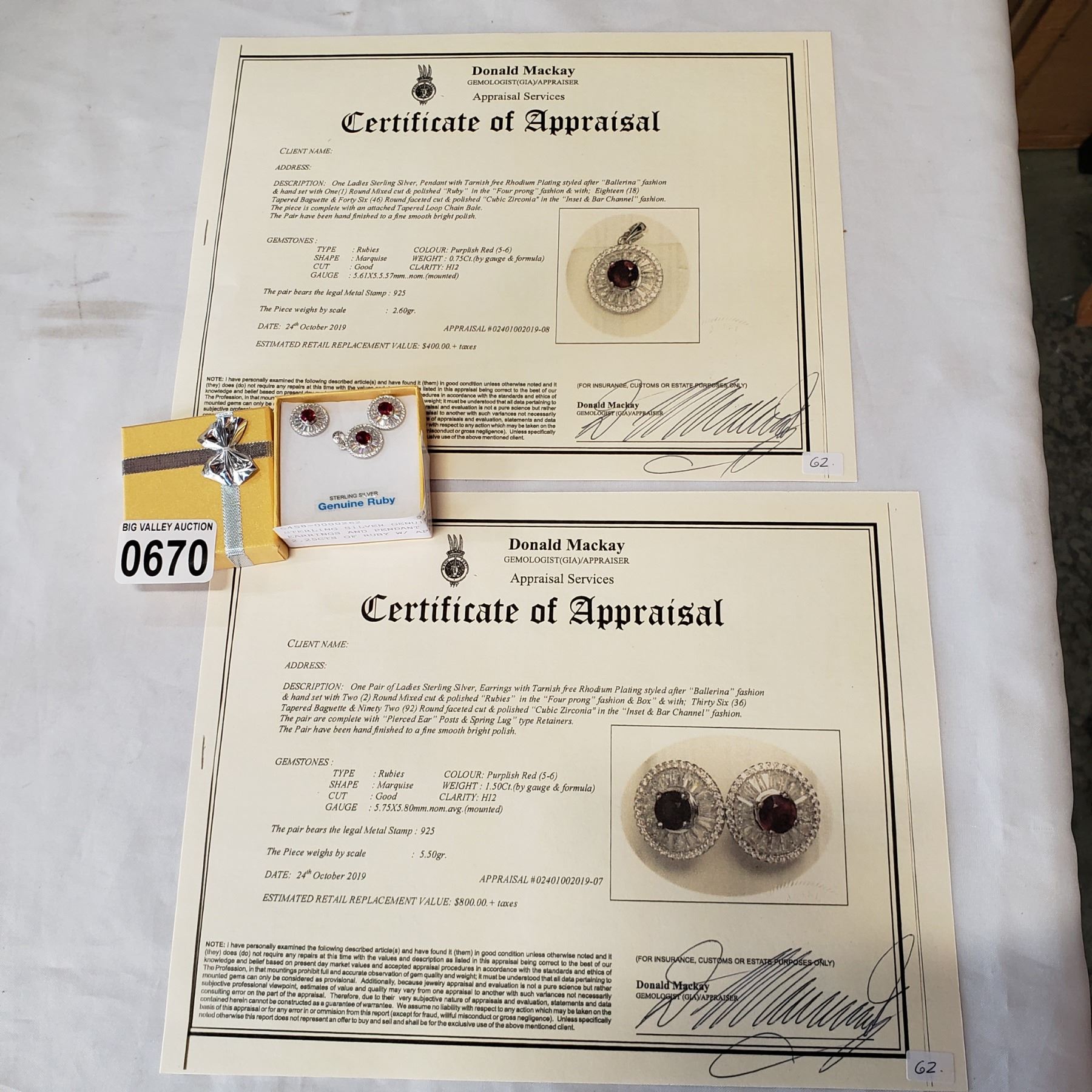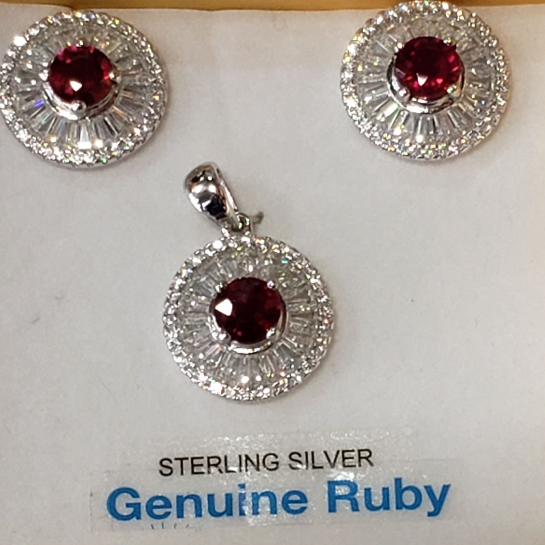 STERLING SILVER GENUINE RUBY EARRINGS AND PENDANT SET 2.25CTS OF RUBY W/ APPRAISAL $800 AND $400