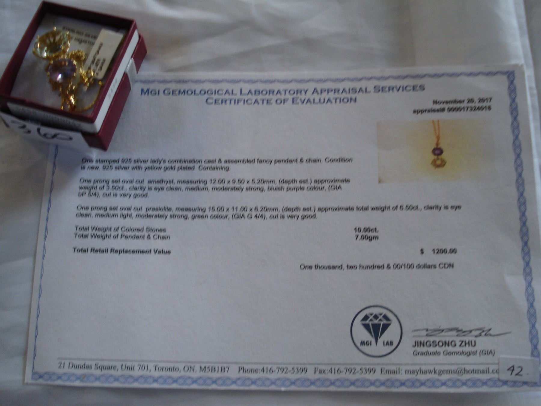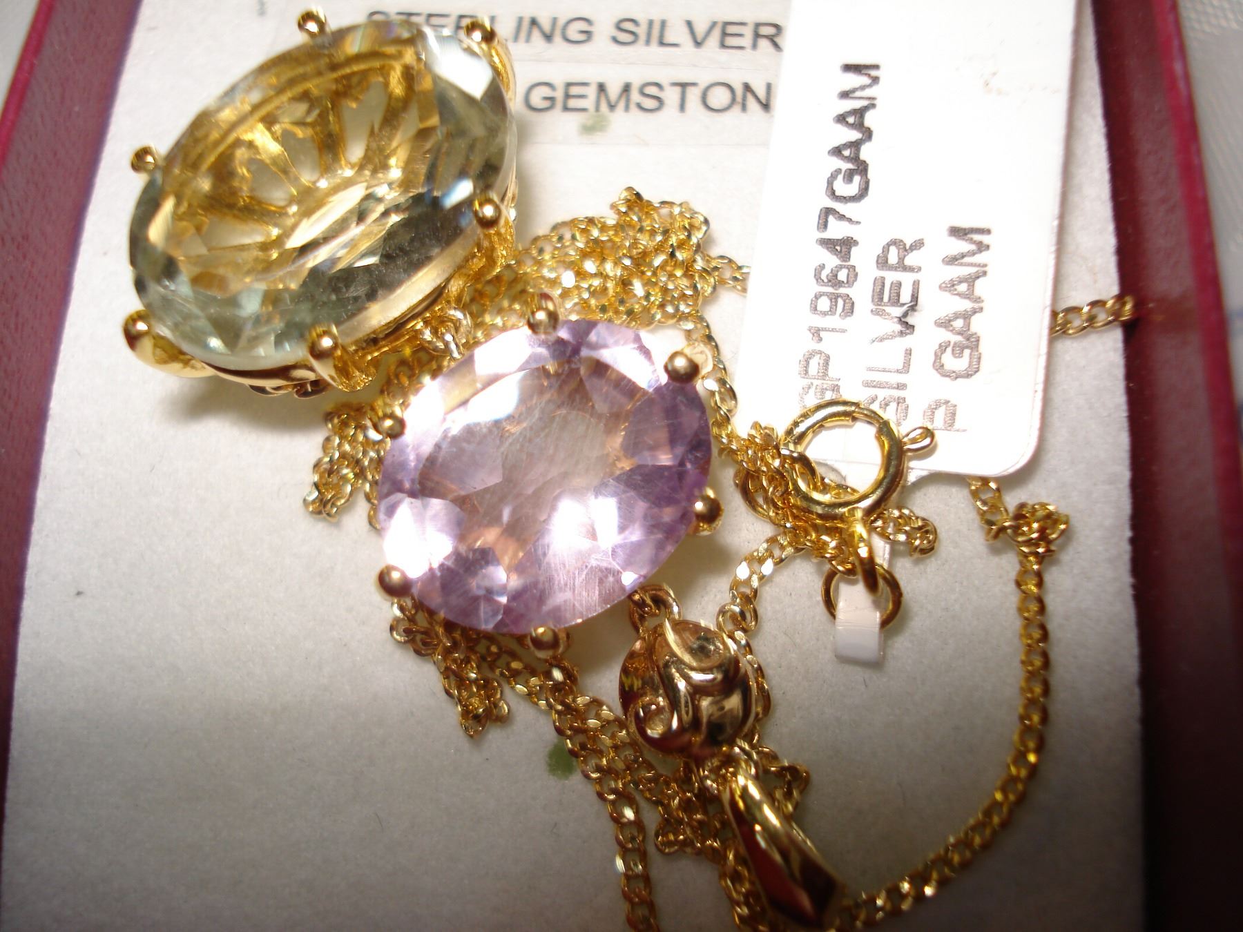 STERLING SILVER GOLD PLATED GENUINE PURPLE AND GREEN AMETHYST NECKLACE WITH APPRAISEL $1200.00