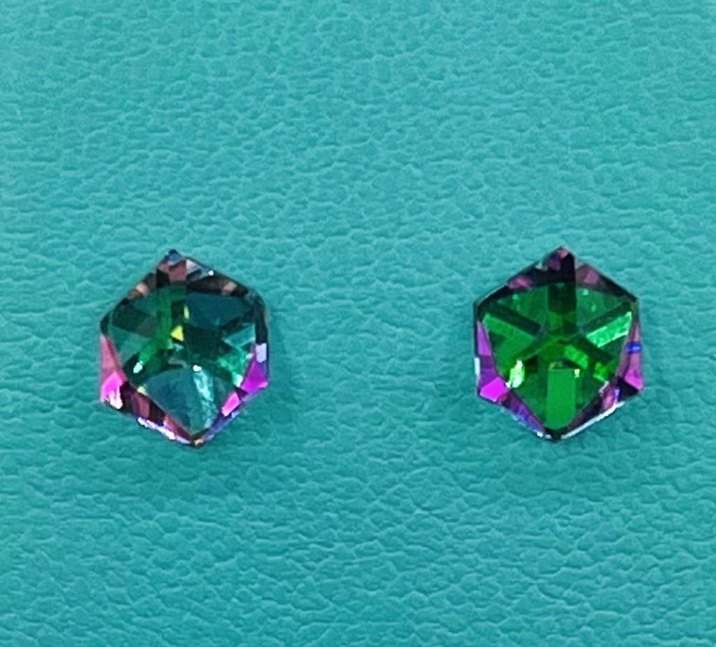 STERLING SILVER GREEN CRYSTAL CUBE STYLE EARRINGS, RETAIL $100.00.