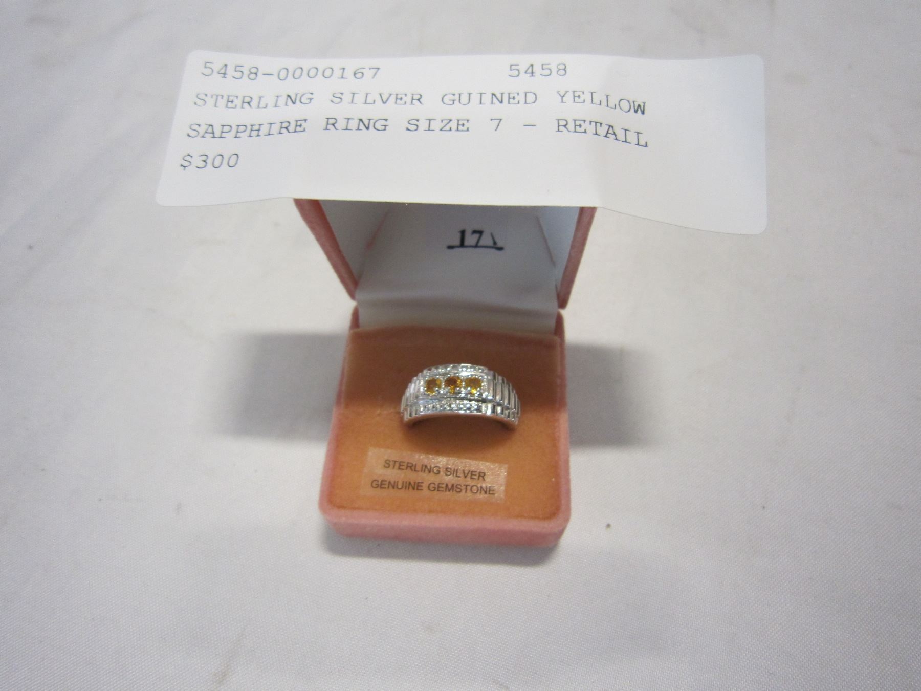 STERLING SILVER GUINED YELLOW SAPPHIRE RING SIZE 7 - RETAIL $300