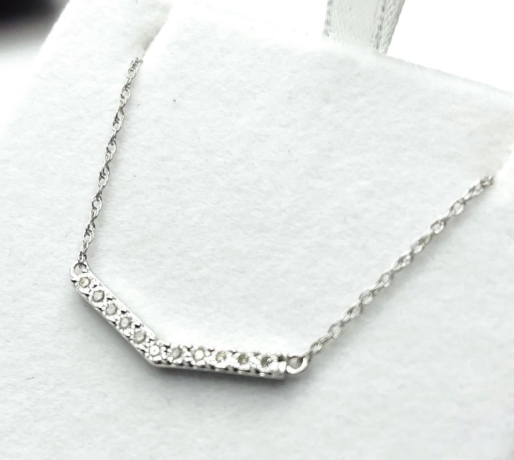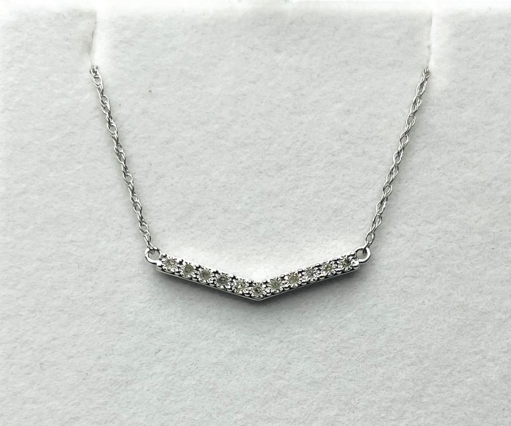 STERLING SILVER NATURAL DIAMOND (0.10CT) NECKLACE, W/A $300.00. DIAMOND IS THE BIRTHSTONE FOR APRIL.