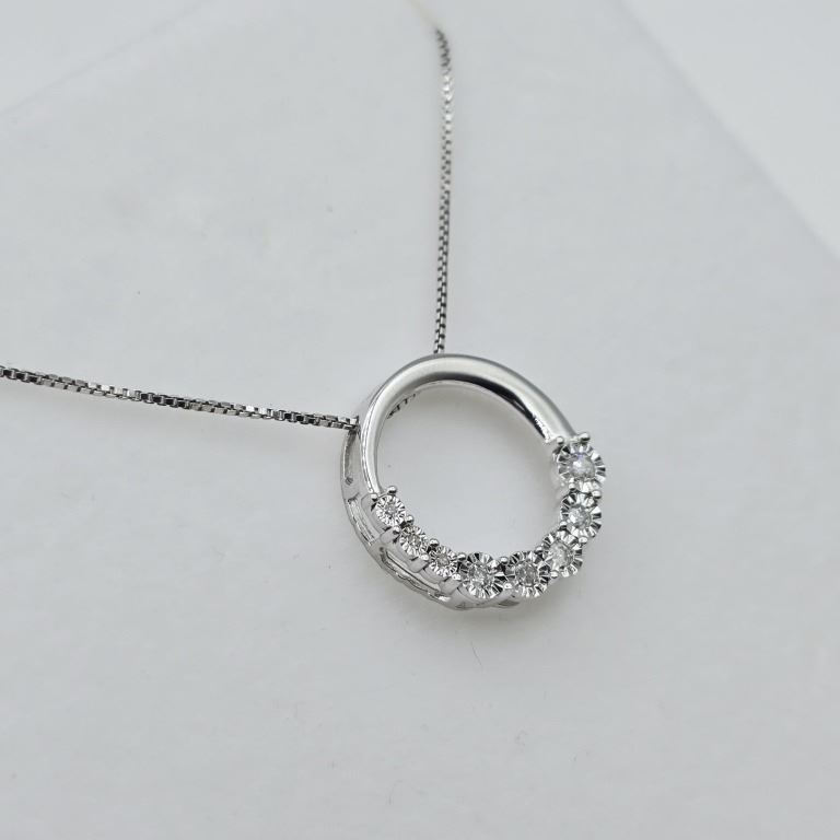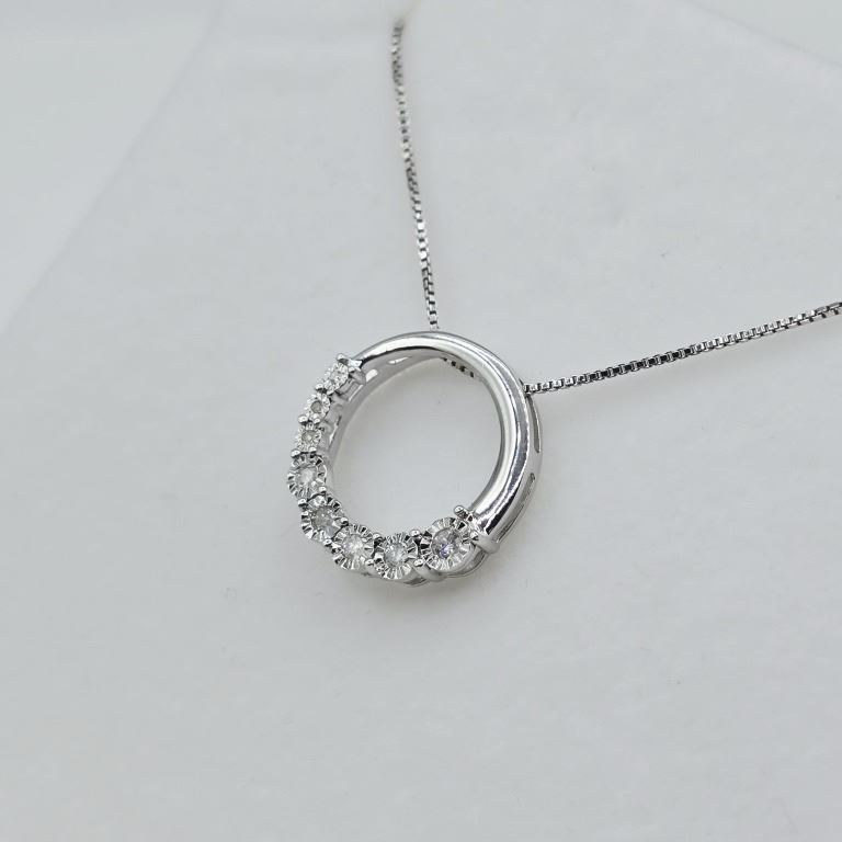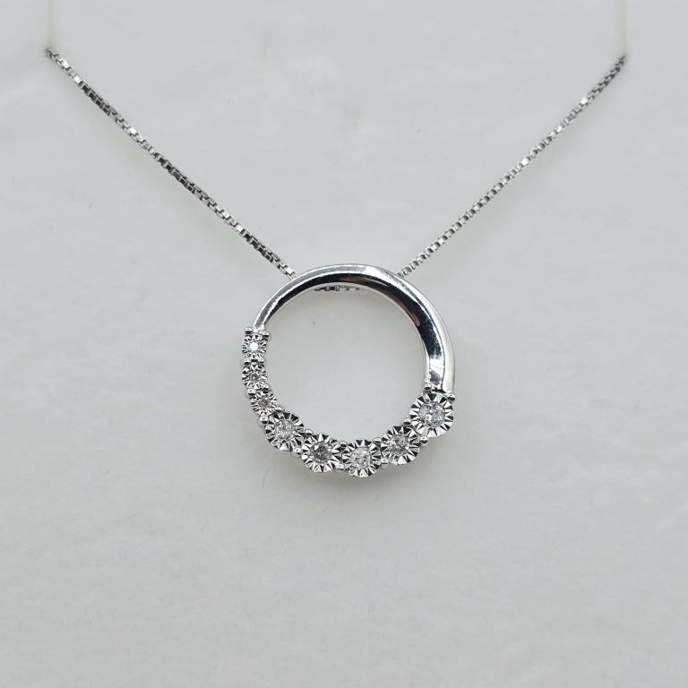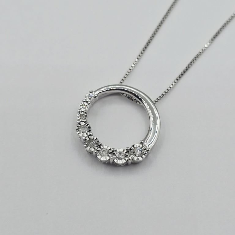 STERLING SILVER NATURAL DIAMOND (0.11CT) CIRCLE PENDANT WITH STERLING SILVER CHAIN, W/A $280.00. DIAMOND IS THE BIRTHSTONE FOR APRIL.