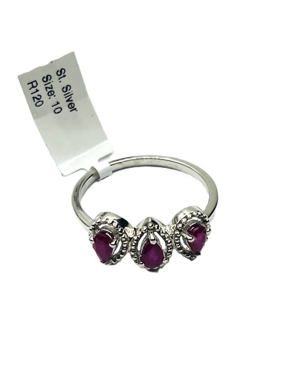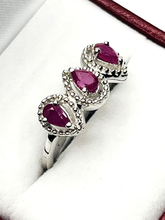 STERLING SILVER NATURAL ENHANCED RUBY (1CT) RING, SIZE 9, W/A $460.00. RUBY I THE BIRTHSTONE FOR JULY.