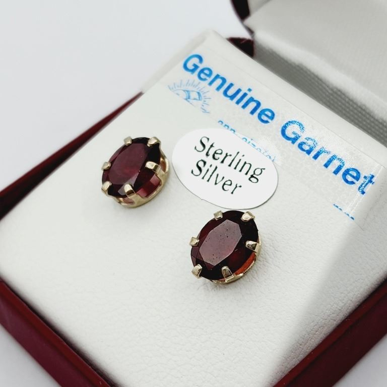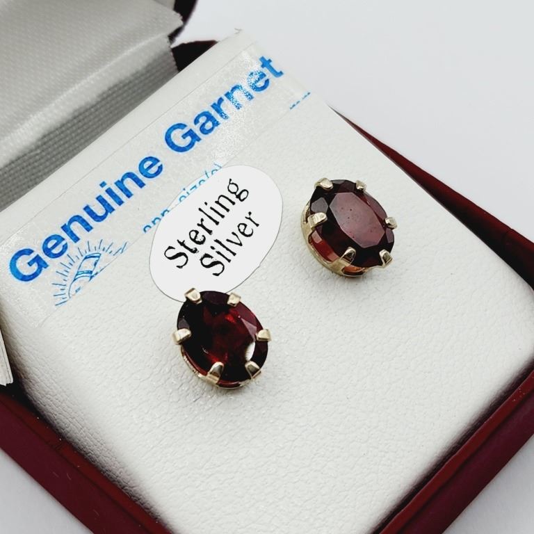 STERLING SILVER NATURAL GARNET (4.2CT) EARRINGS, RETAIL $400.00. GARNET IS THE BIRTHSTONE FOR JANUARY.