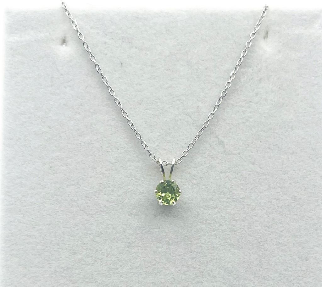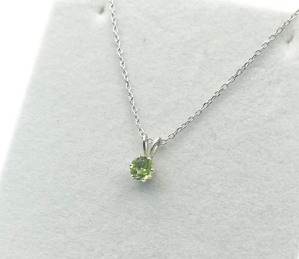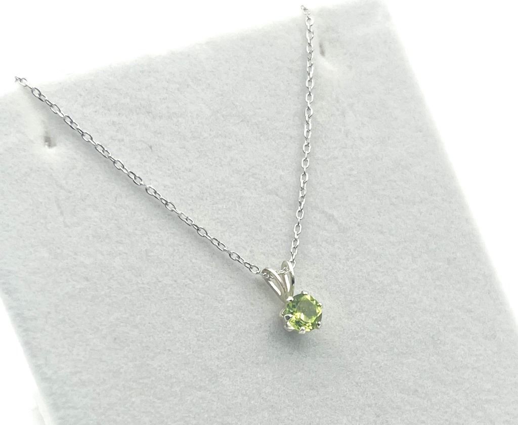 STERLING SILVER NATURAL PERIDOT PENDANT WITH STERLING SILVER CHAIN, RETAIL $300.00. PERIDOT IS THE BIRTHSTONE FOR AUGUST.