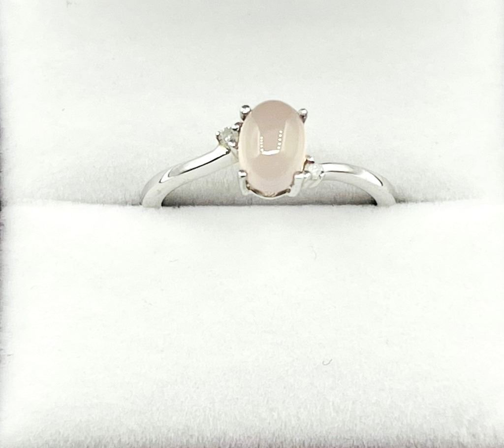 STERLING SILVER NATURAL ROSE QUARTZ (0.85CT) WITH DIAMOND (0.01CT) RING, SIZE 6.5, W/A $300.00.