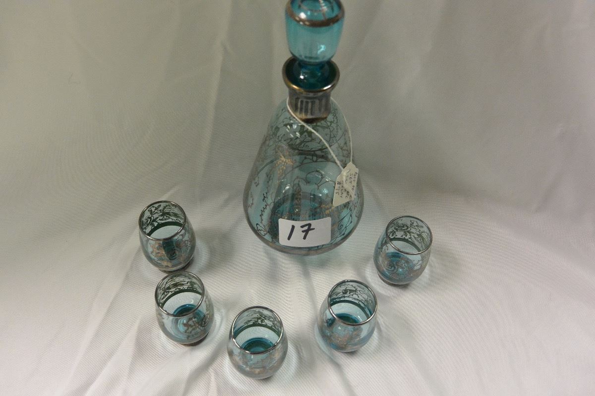 STERLING SILVER OVERLAY DECANTER SET