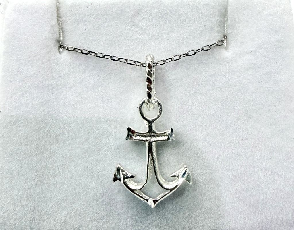 STERLING SILVER PLAIN ANCHOR PENDANT WITH STERLING SILVER CHAIN, RETAIL $300.00.