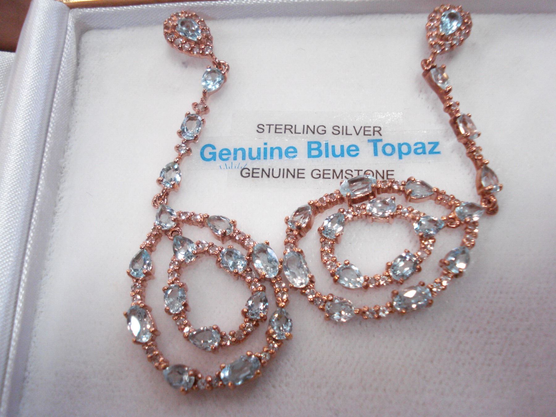 STERLING SILVER ROSE GOLD PLATED GENUINE TOPAZ AND CUBIC ZIRCONIA DANGLE EARRINGS WITH APPRAISELS $1000.00