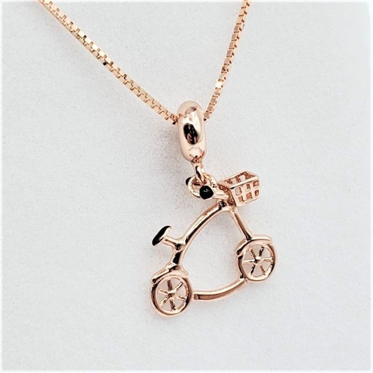 STERLING SILVER ROSE GOLD TONE ADJUSTABLE BICYCLE NECKLACE, RETAIL $200.00