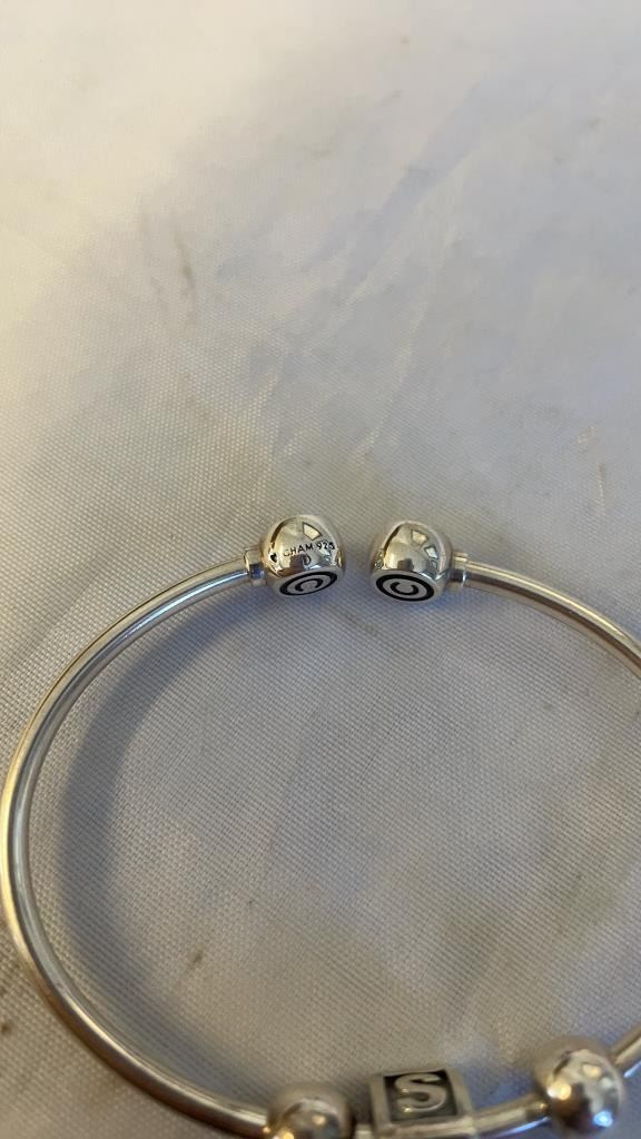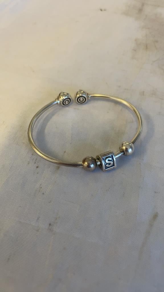 STERLING SILVER "S" BANGLE MARKED "CHAM 925 D"