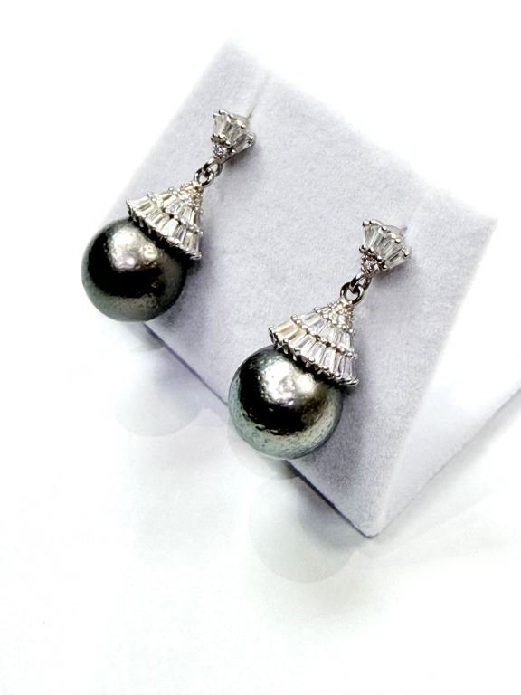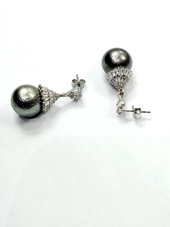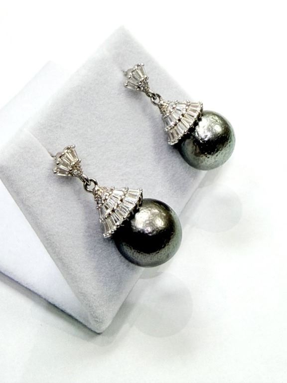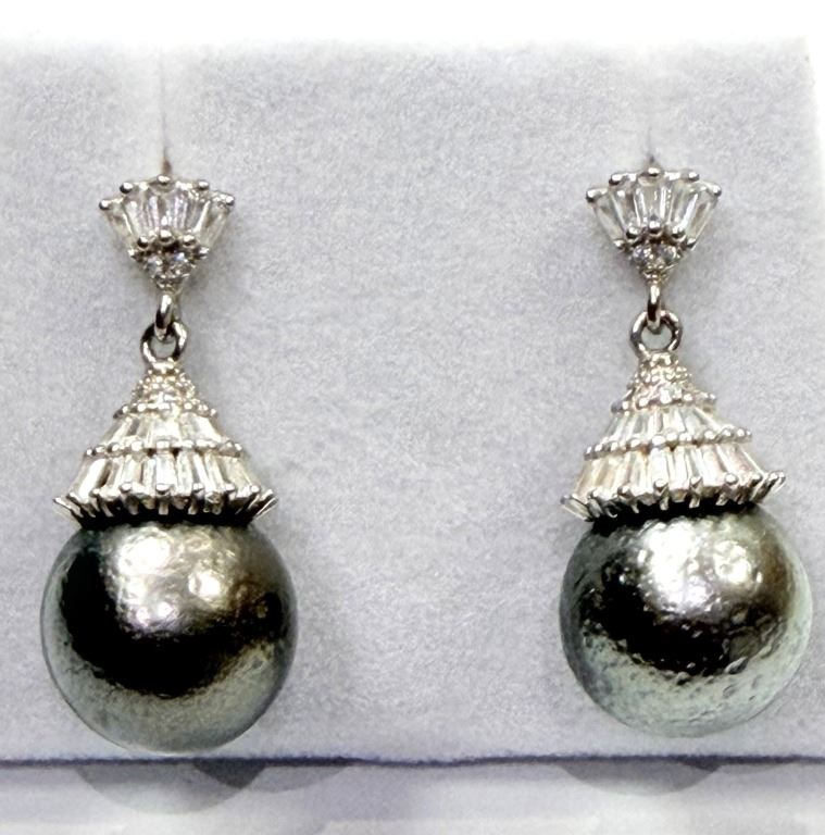 STERLING SILVER SOUTH SEA PEARL 13.3MM X 13.4MM WITH CZ (1.20CT) DROP STYLE EARRINGS, W/A $875.00.