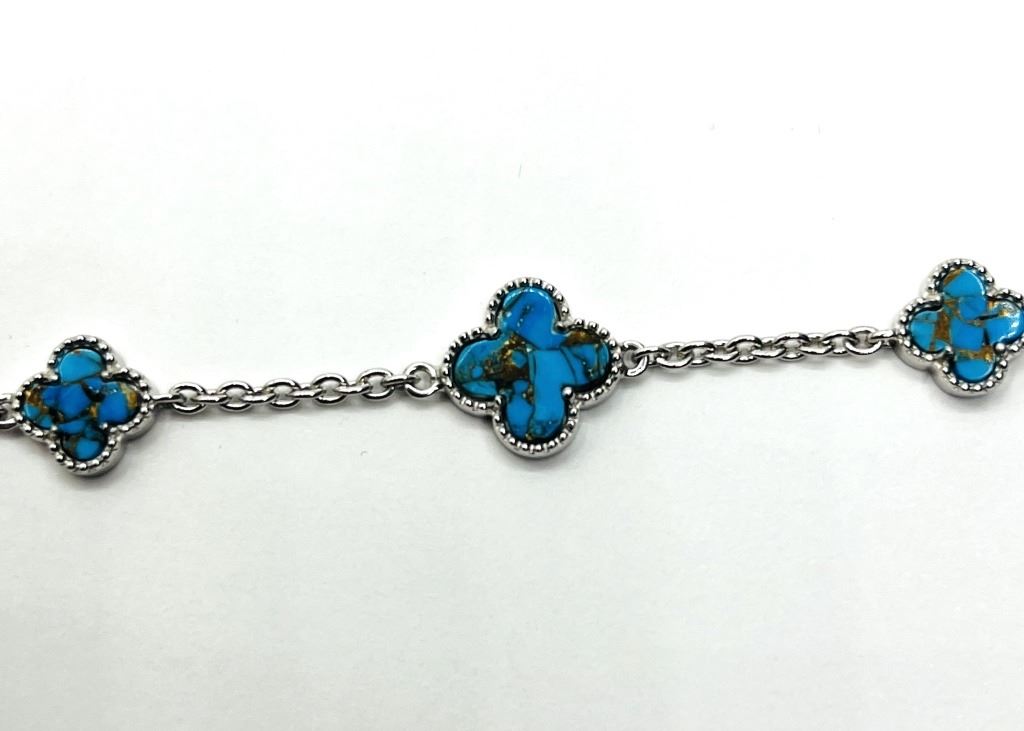 STERLING SILVER TURQUOISE (3.5CT) CLOVER CUT BRACELET, W/A $460.00.