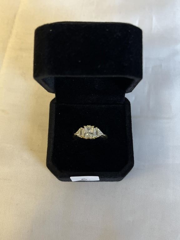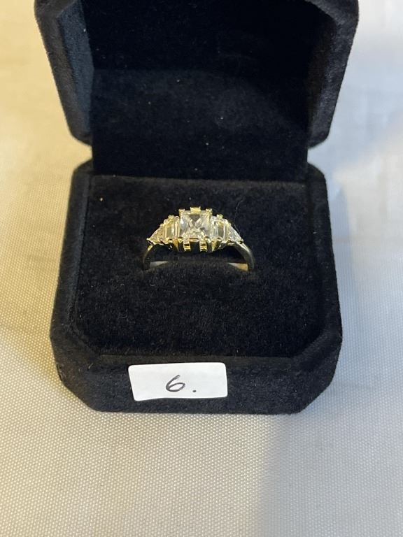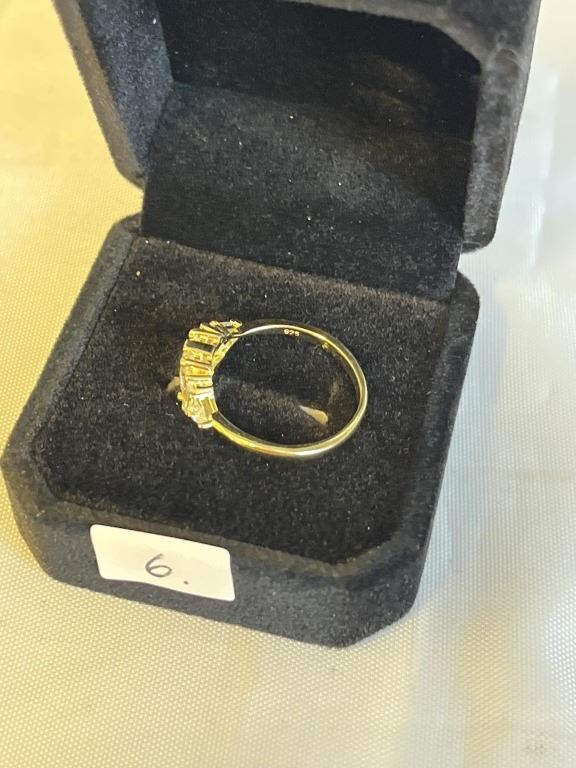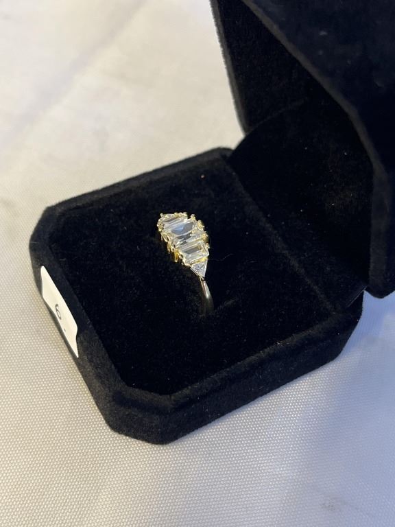 STERLING SILVER W/ SPARKLING STONES RING, MARKED 925 EXCELLENT CONDITION, RING SIZE 8