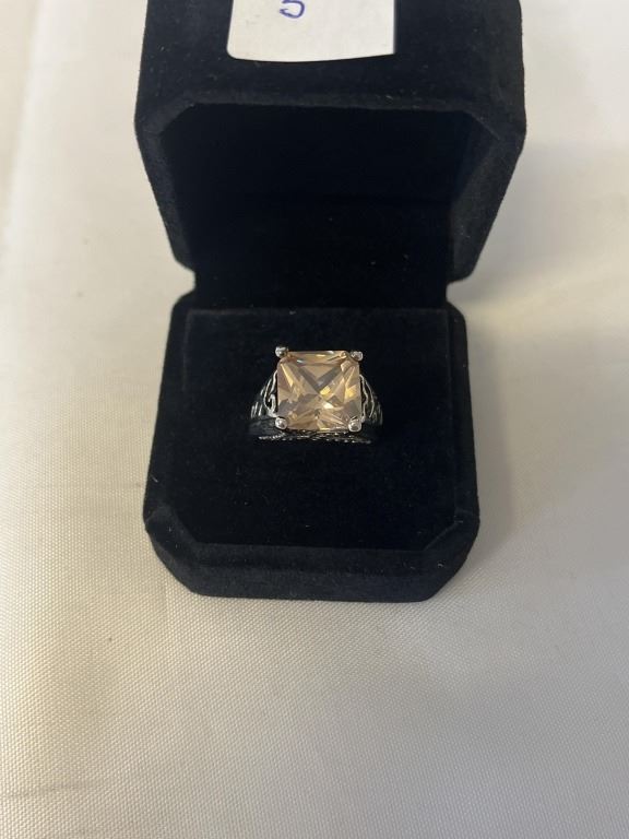 STERLING SILVER WITH TOPAZ QUARTZ STONE RING MARKED 925 SIZE 8
