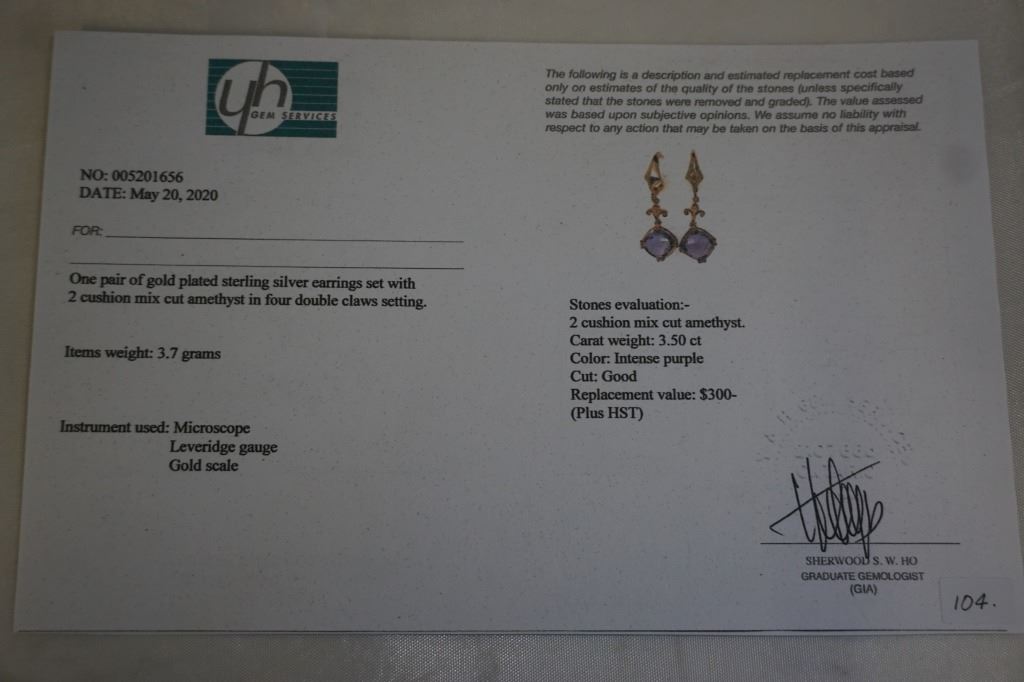 STERLING SILVER YELLOW GOLD PLATED 8X8MM GENUINE AMETHYST EARRINGS W/ APPRAISAL $300 - 3.5CTS AMETHYST, BIRTHSTONE FEBRUARY
