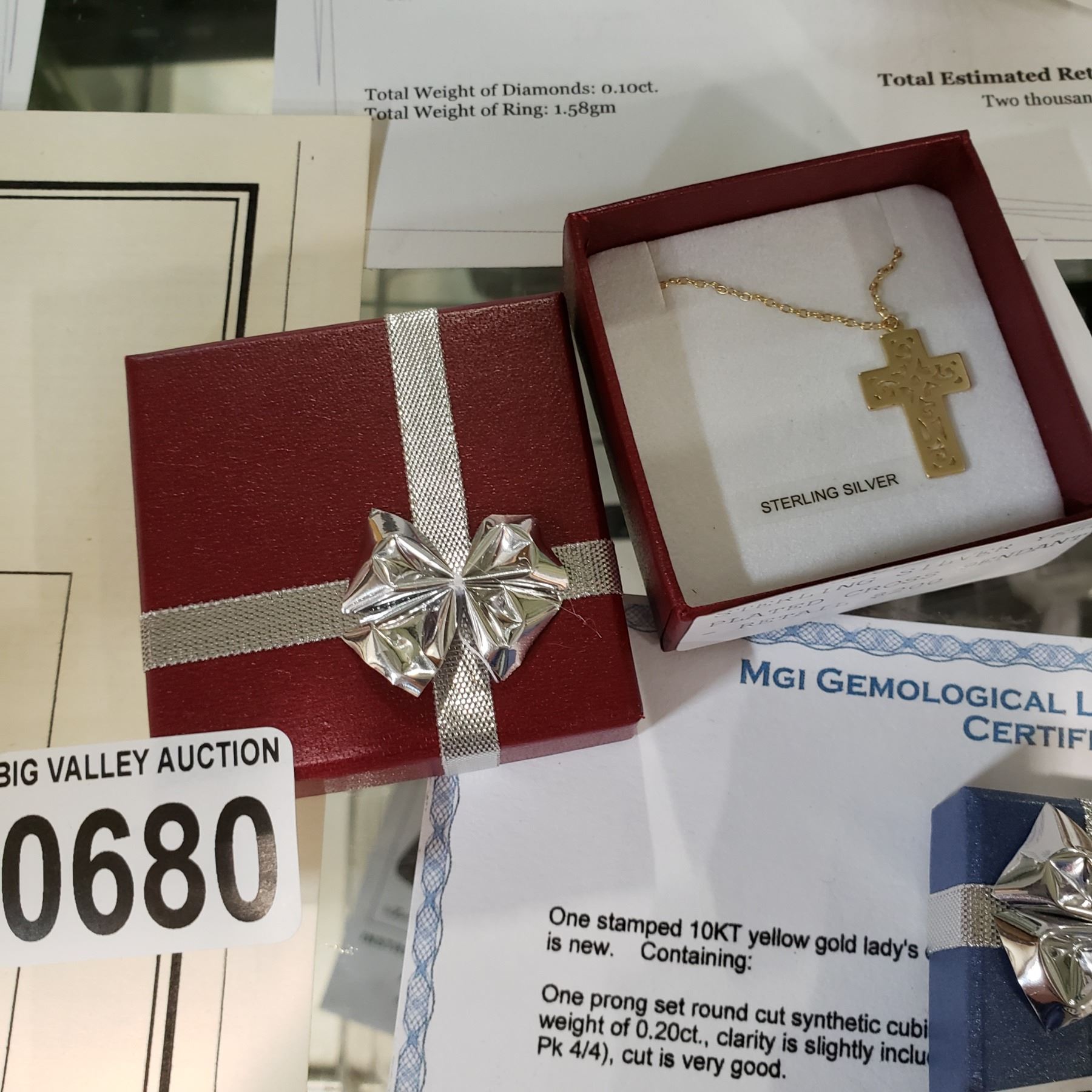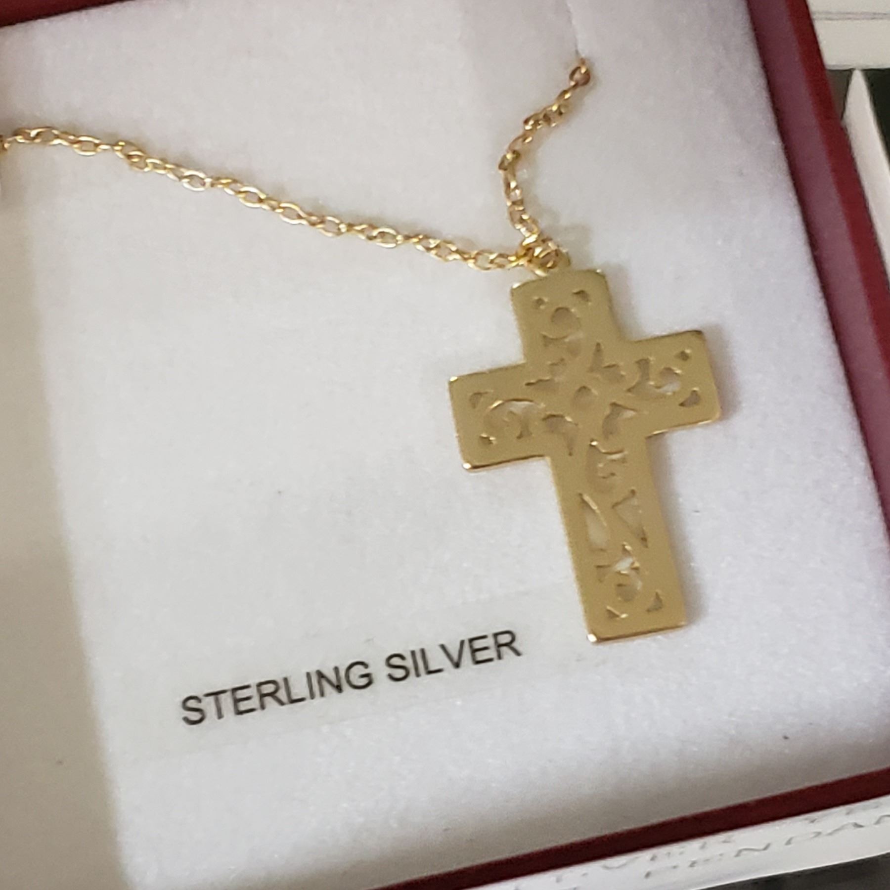 STERLING SILVER YELLOW GOLD PLATED CROSS PENDANT W/ CHAIN - RETAIL $200