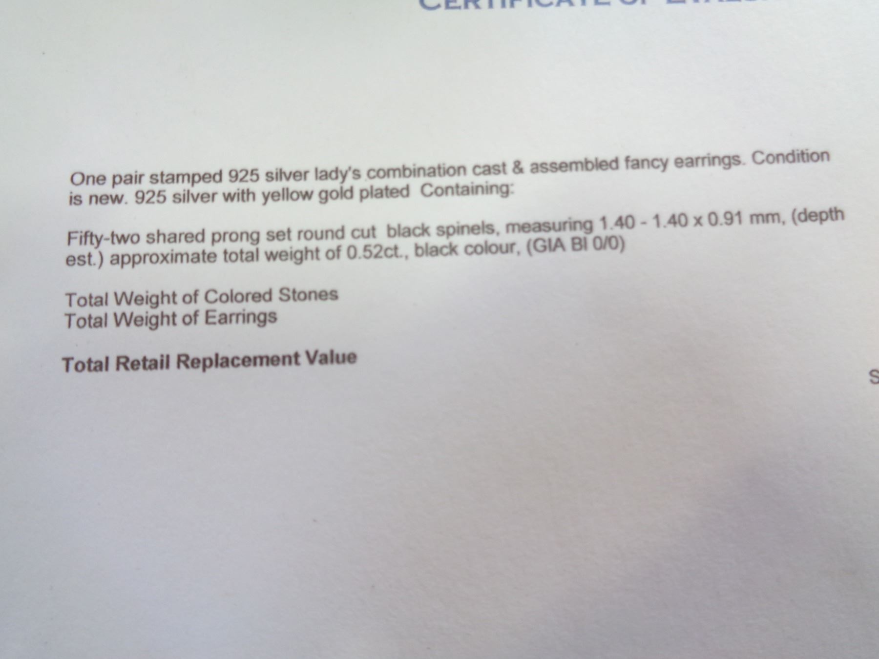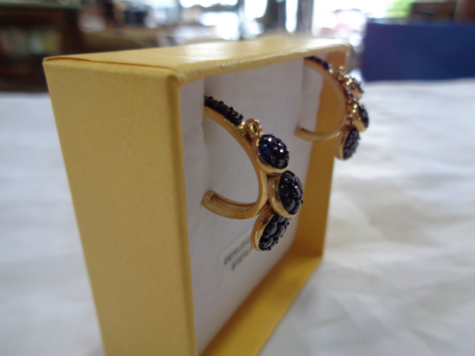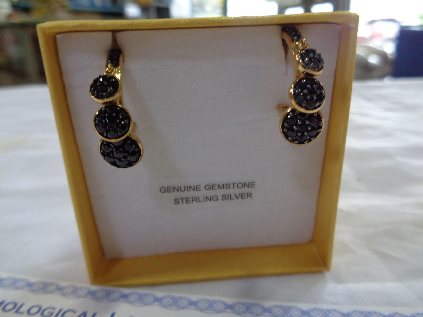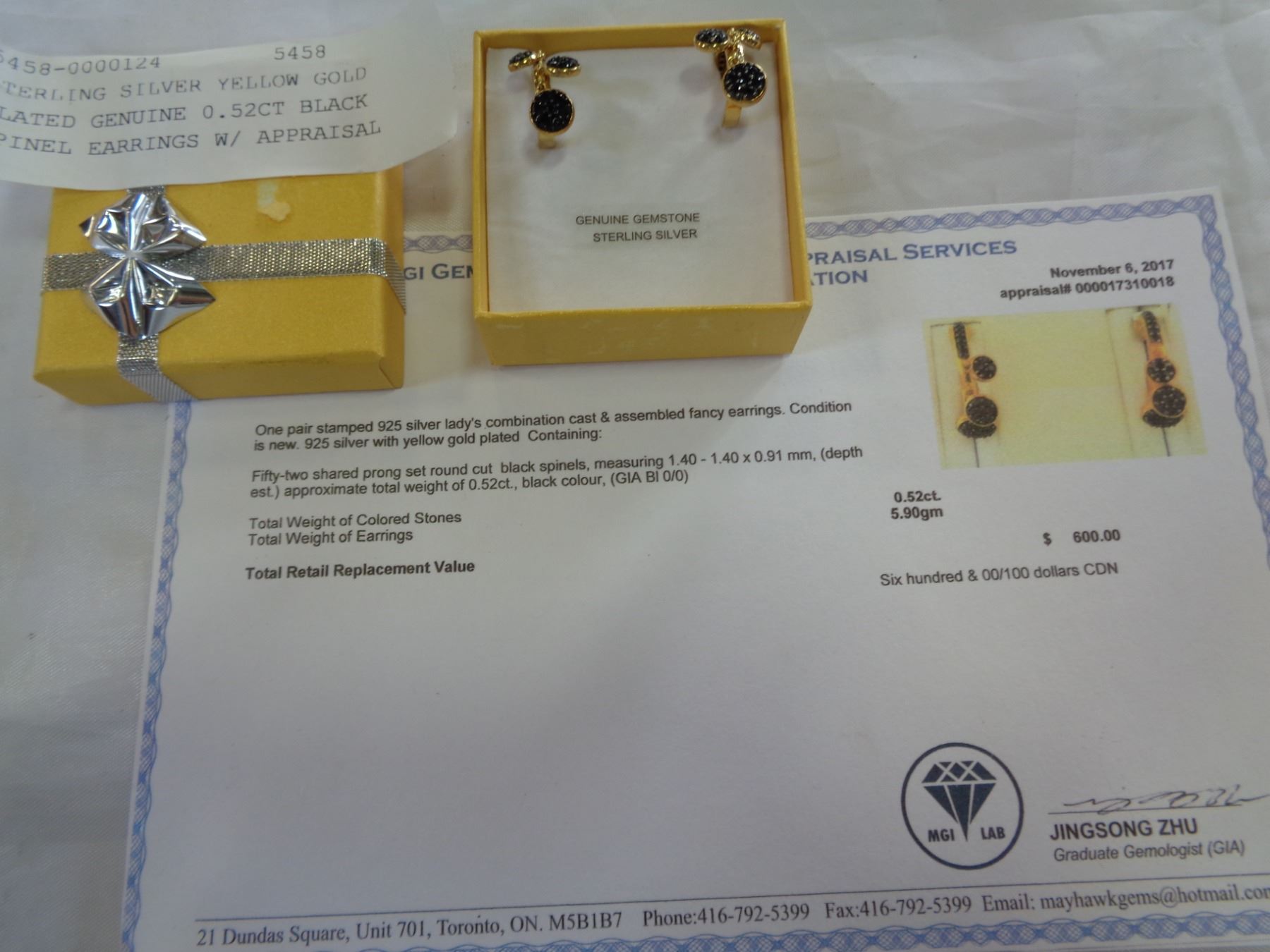 STERLING SILVER YELLOW GOLD PLATED GENUINE 0.52CT BLACK SPINEL EARRINGS W/ APPRAISAL $600