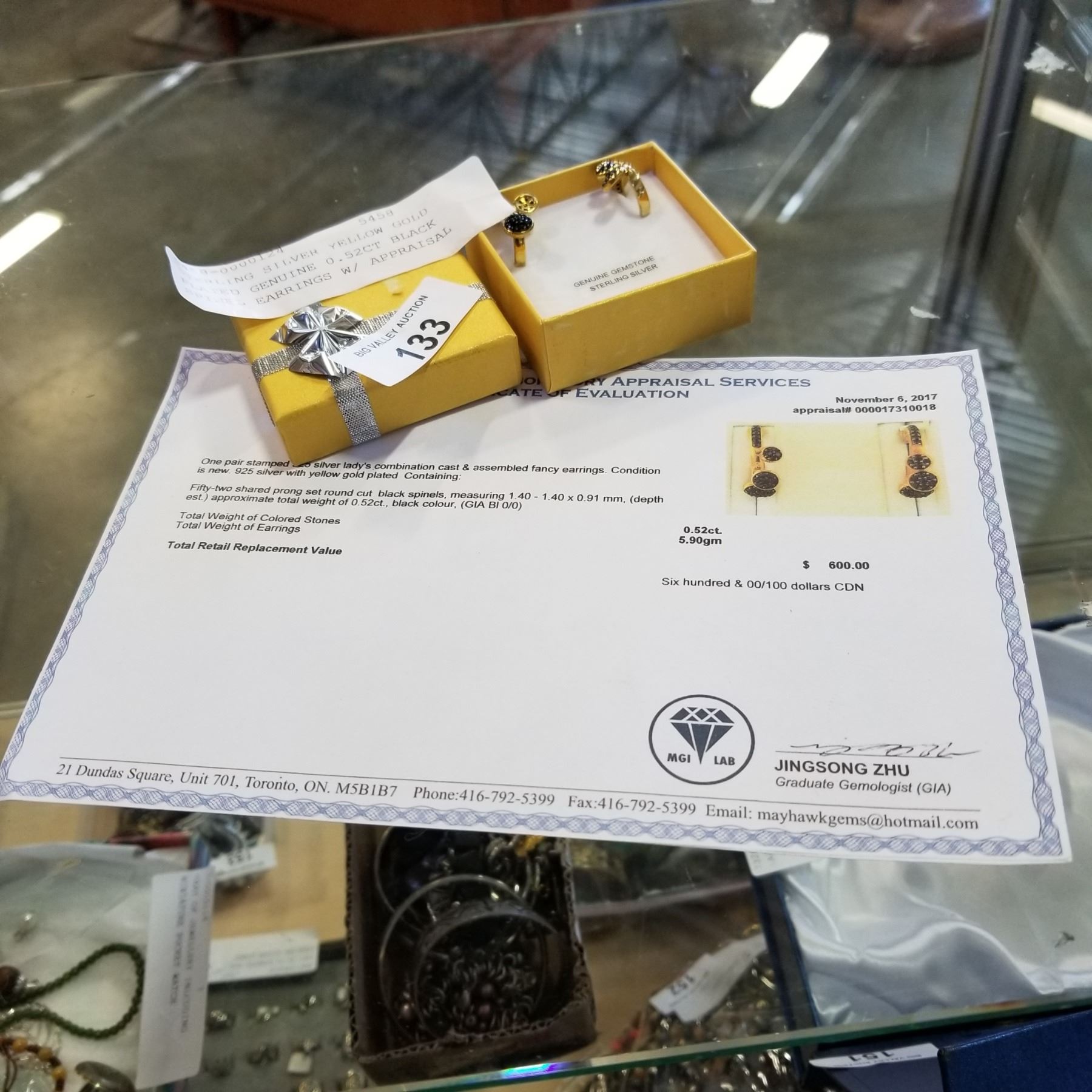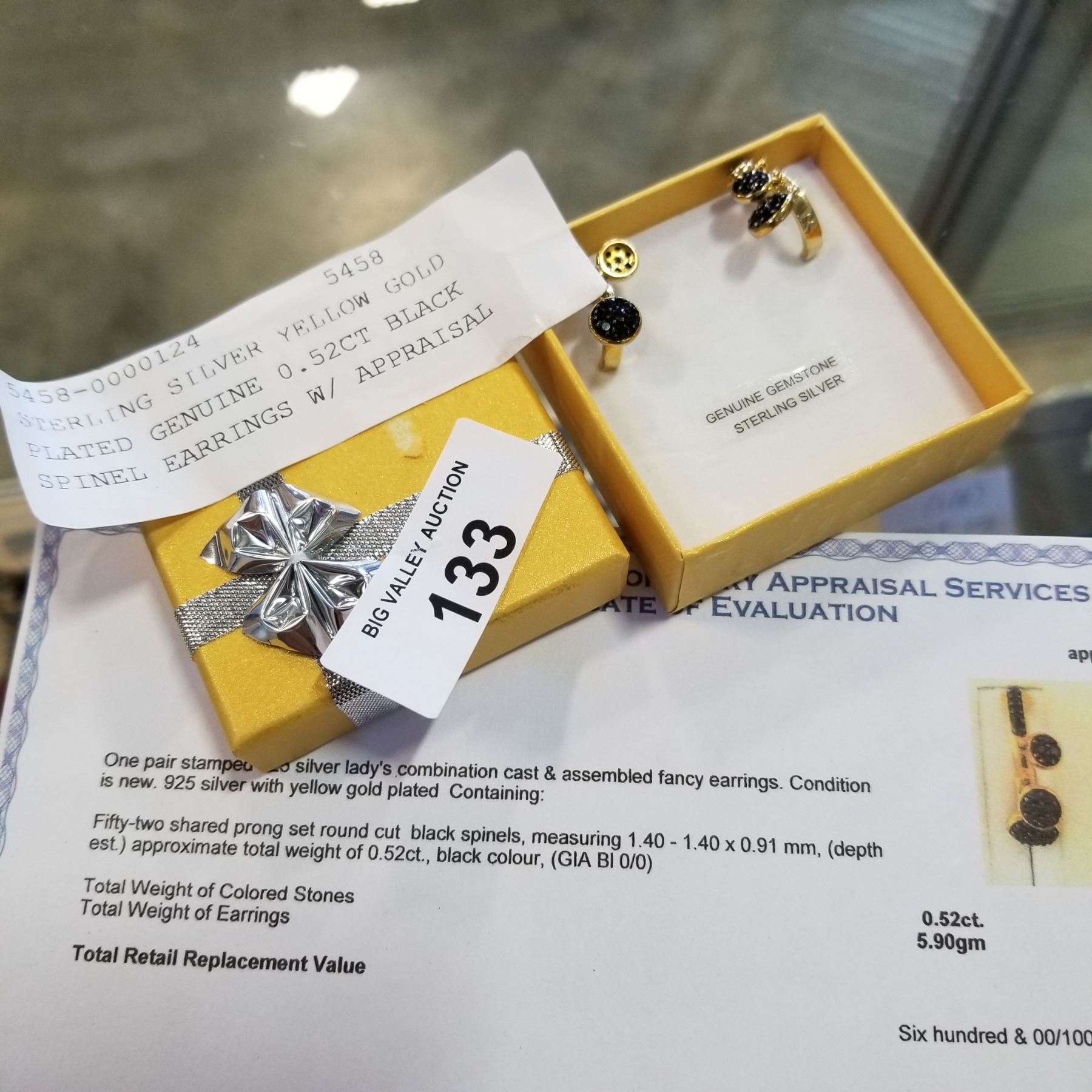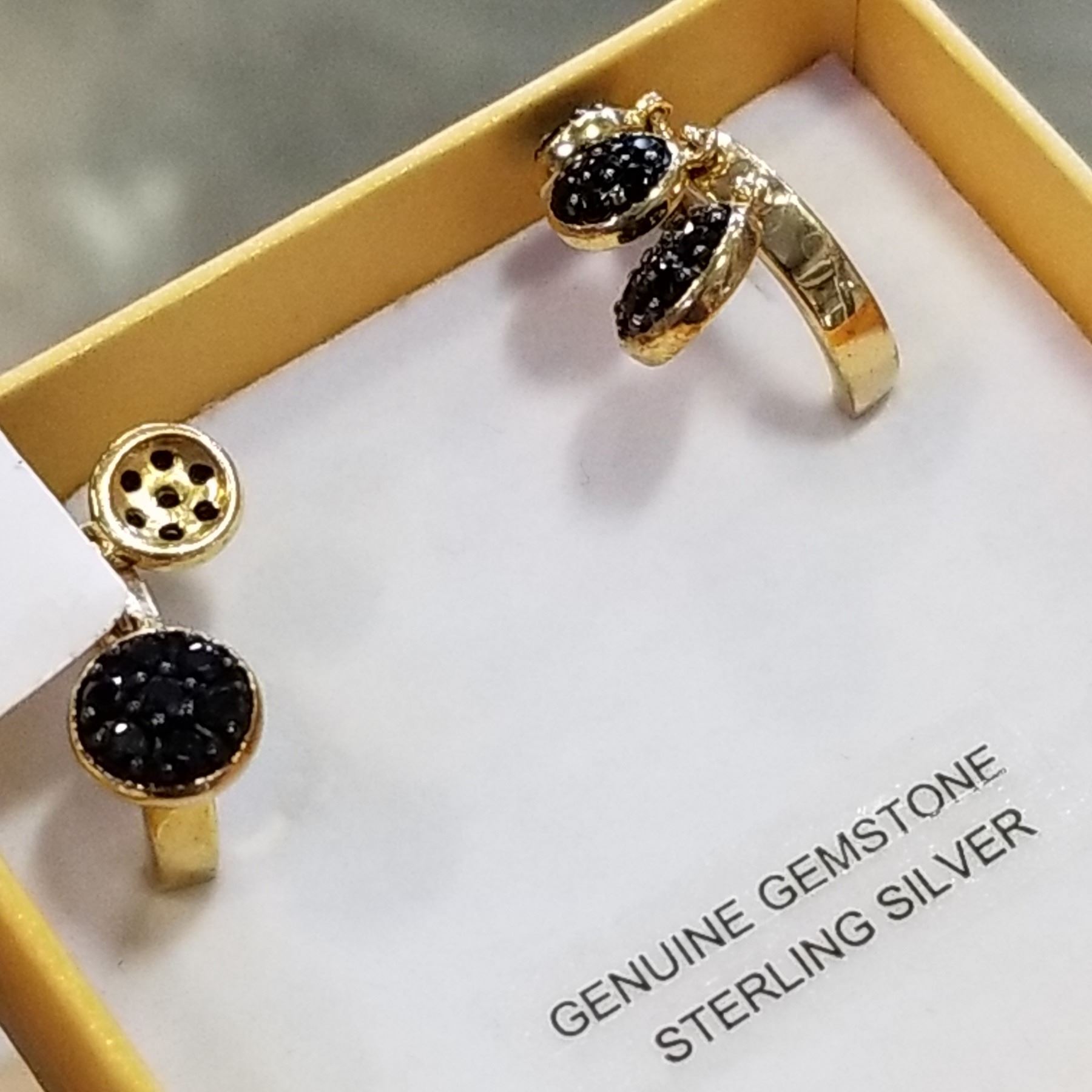 STERLING SILVER YELLOW GOLD PLATED GENUINE 0.52CT BLACK SPINEL EARRINGS W/ APPRAISAL $600
