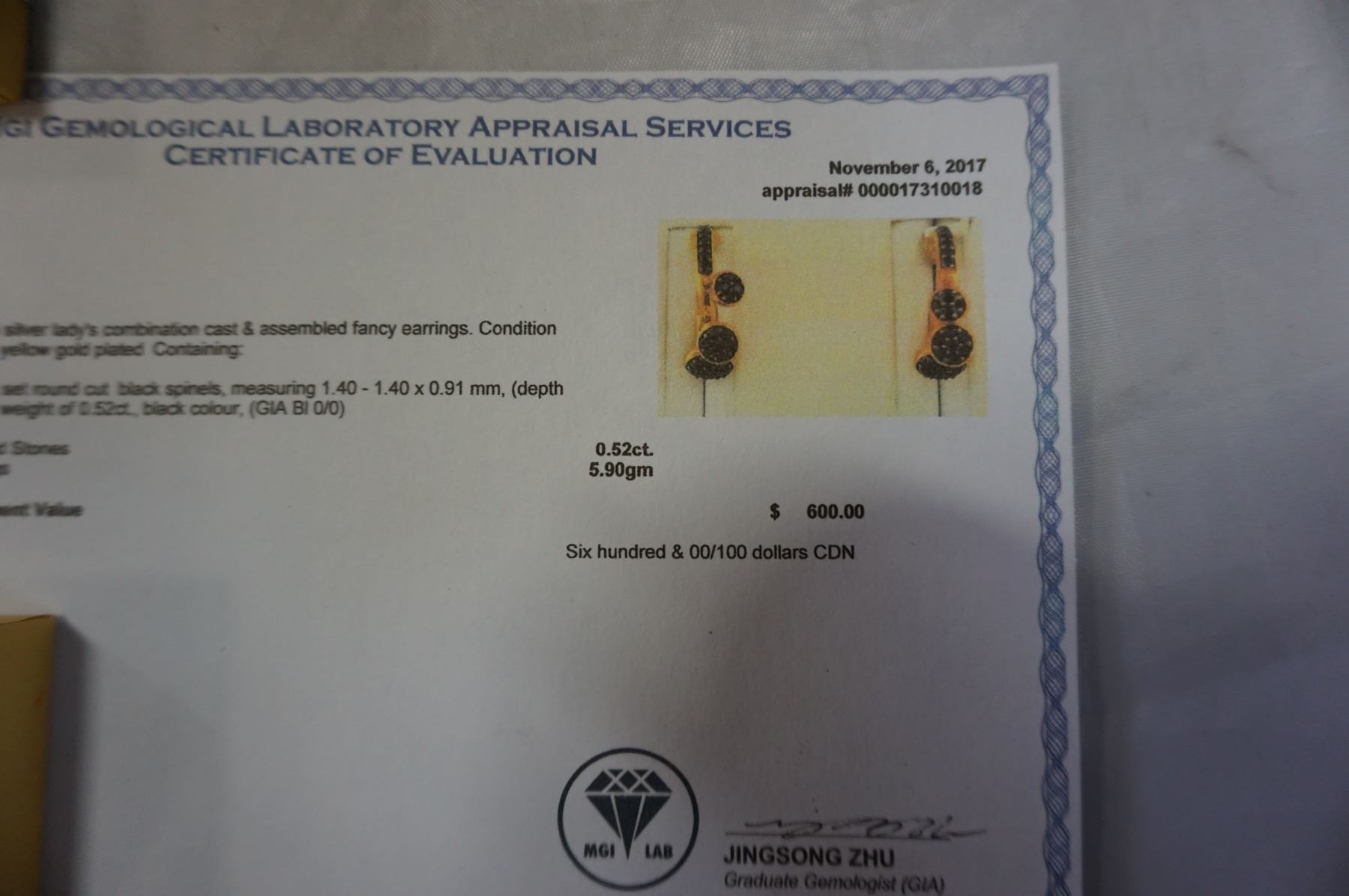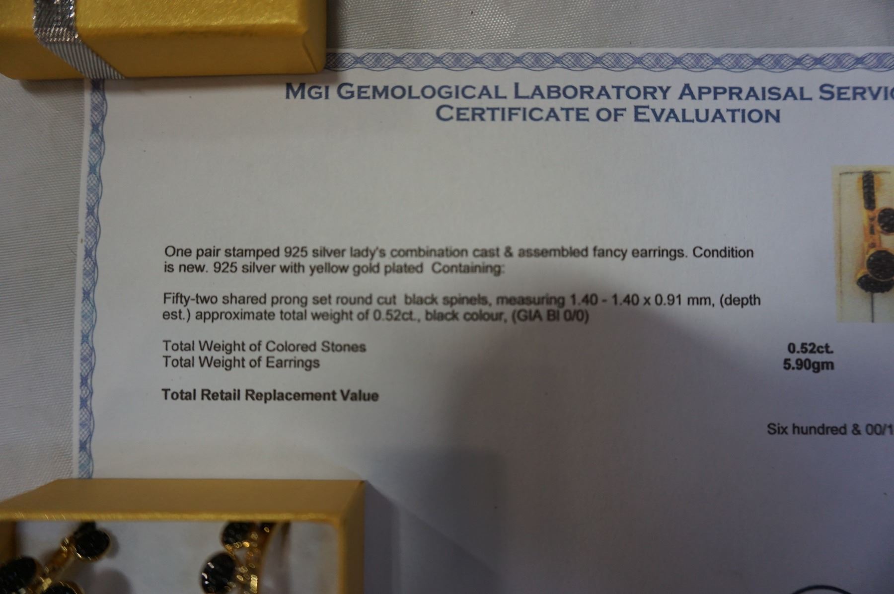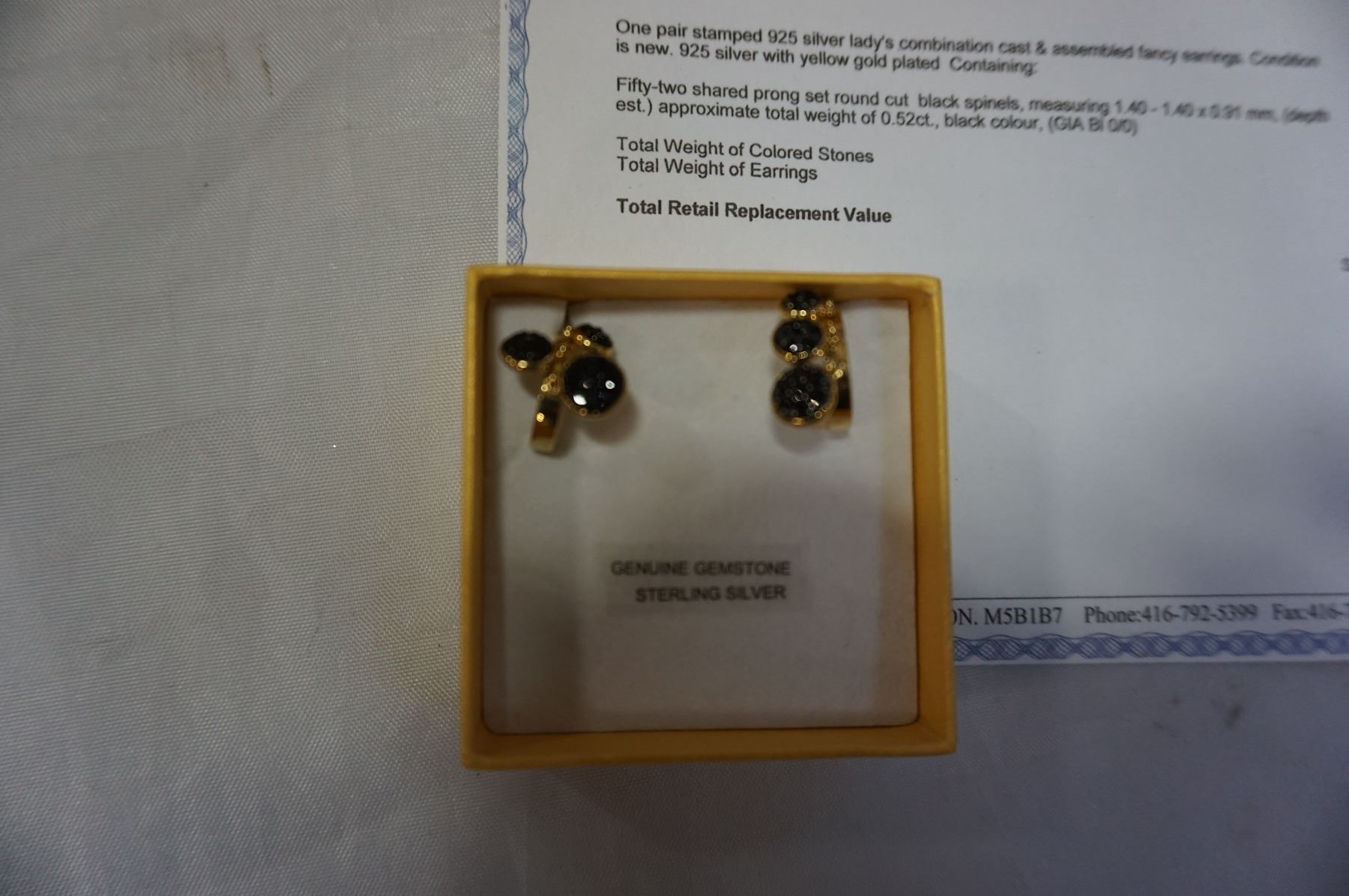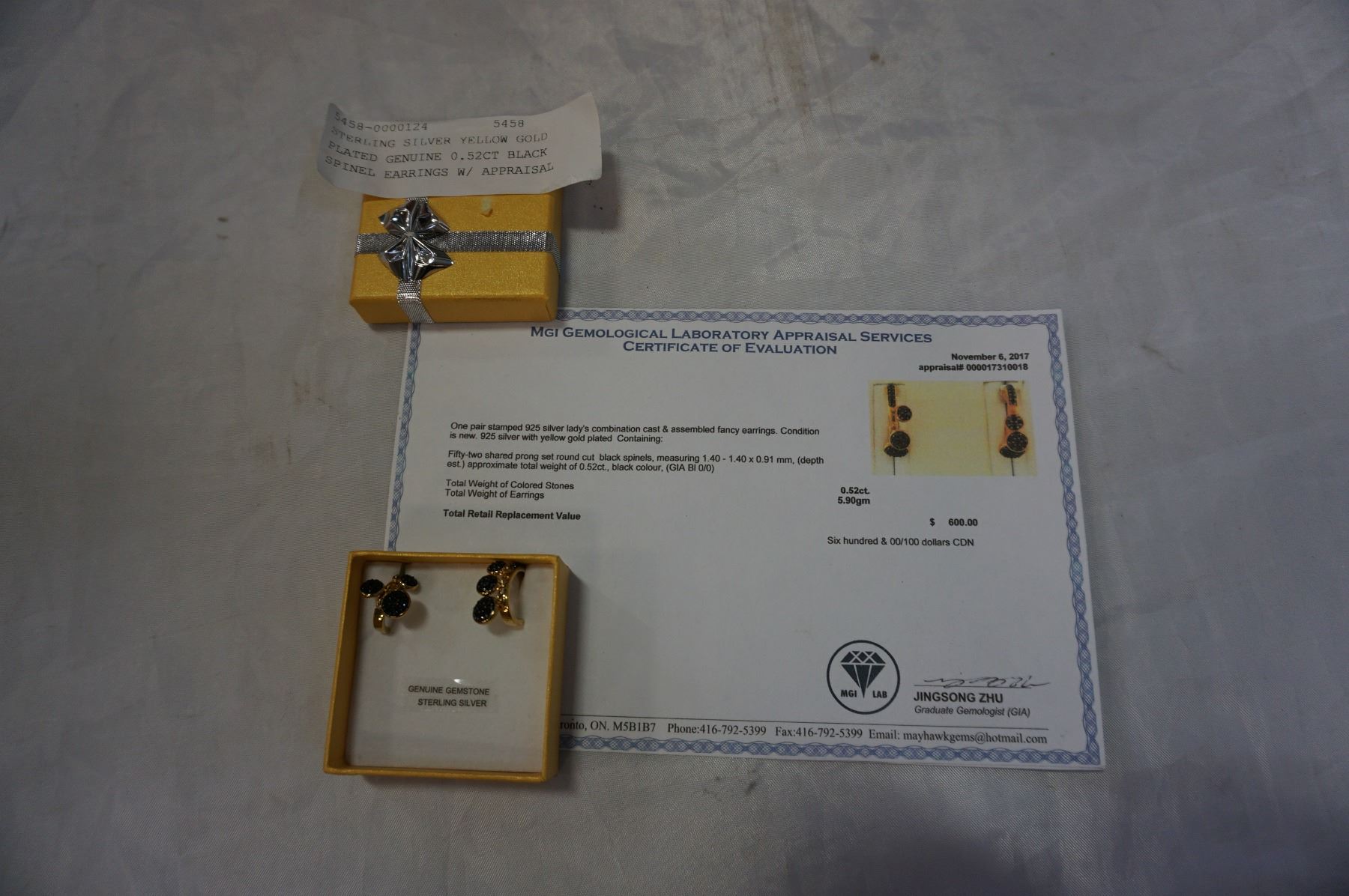 STERLING SILVER YELLOW GOLD PLATED GENUINE 0.52CT BLACK SPINEL EARRINGS W/ APPRAISAL $600