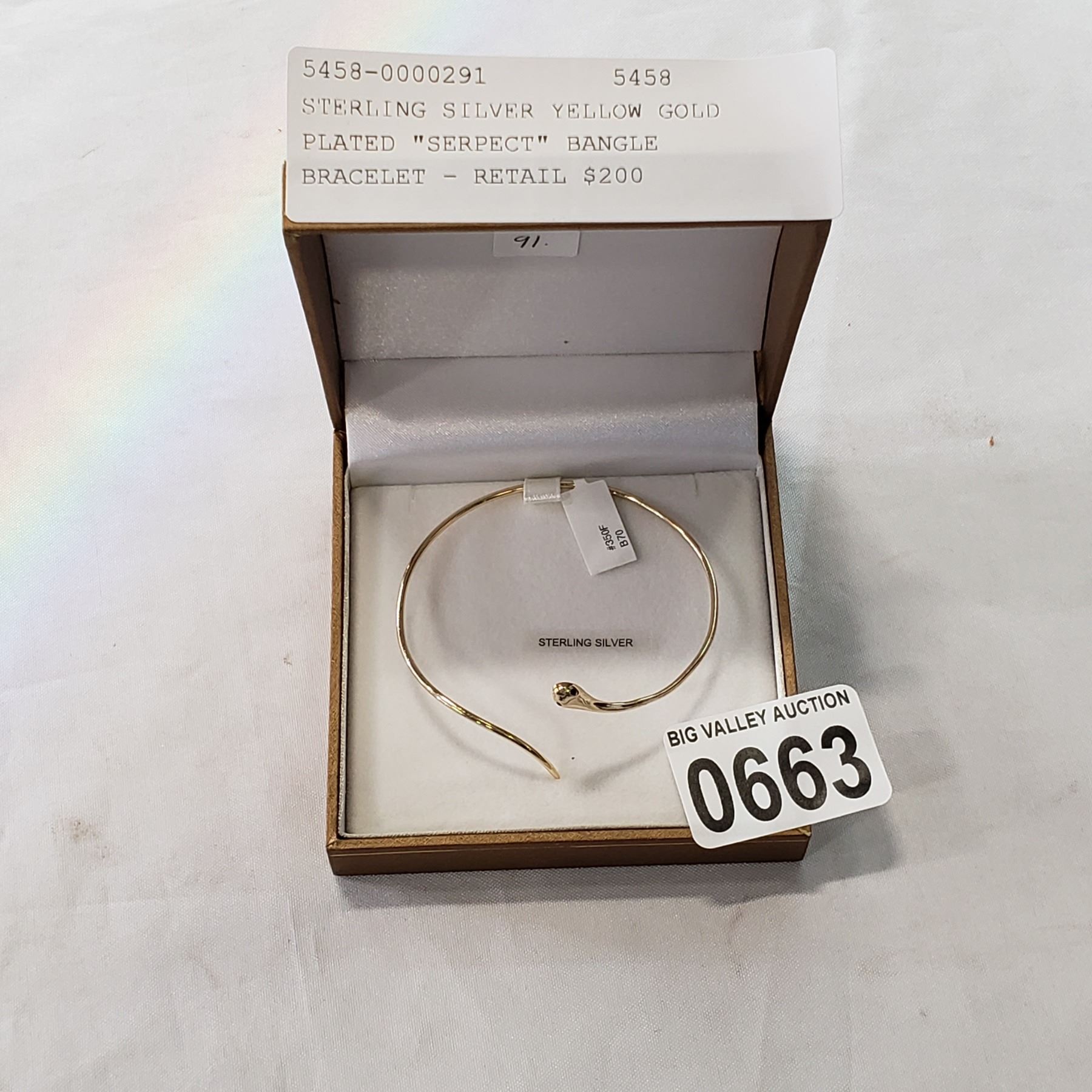 STERLING SILVER YELLOW GOLD PLATED "SERPECT" BANGLE BRACELET - RETAIL $200