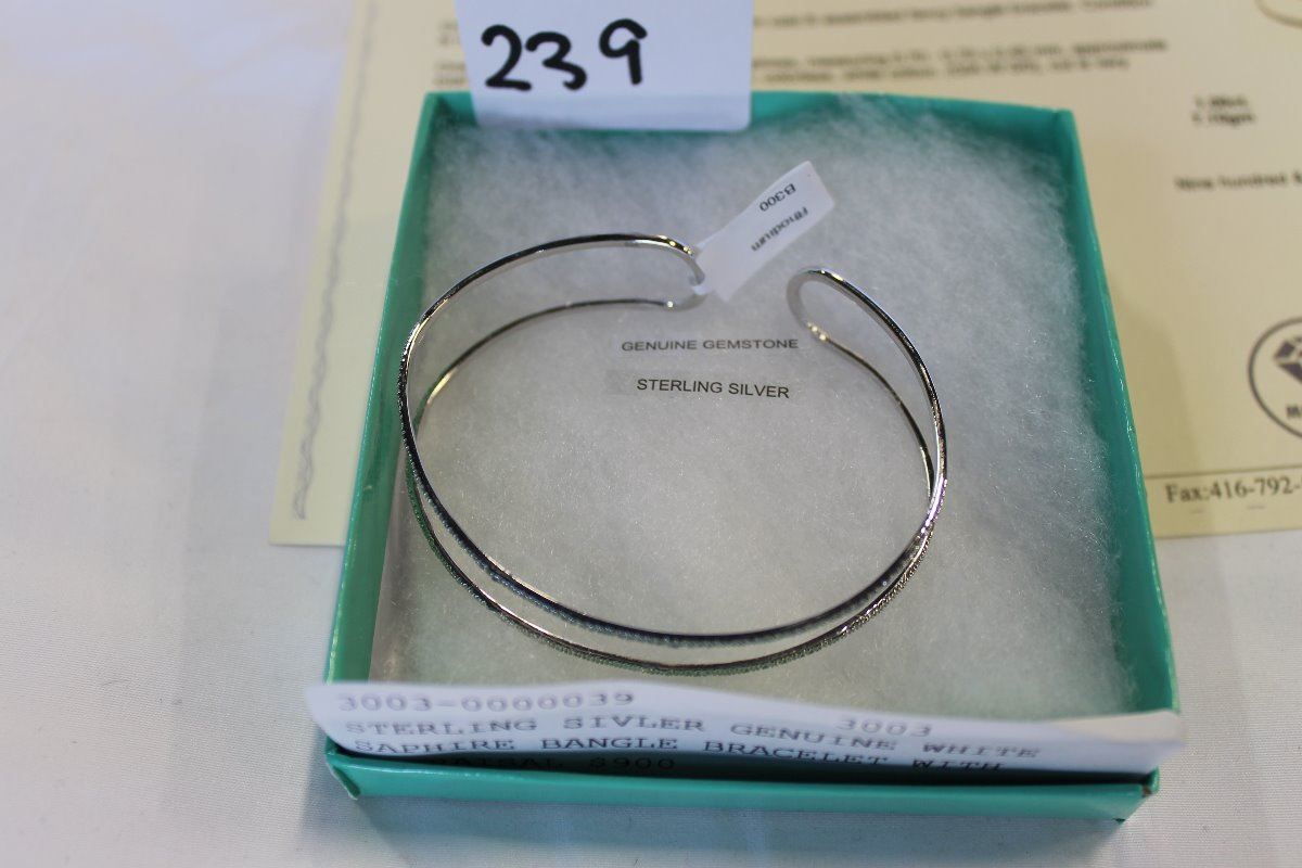 STERLING SIVLER GENUINE WHITE SAPHIRE BANGLE BRACELET WITH