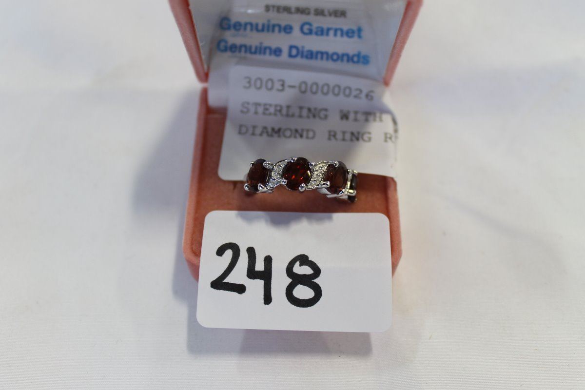 STERLING WITH GARNET AND DIAMOND RING RETAIL $300