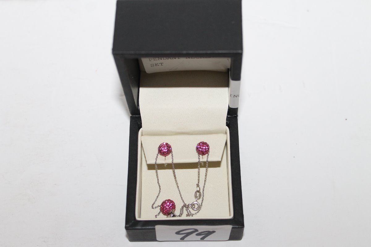 STERLING WITH PINK STONE PENDANT NECKLACE AND EARRING