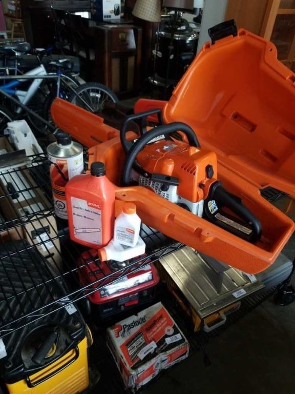 STIHL MS170 GAS CHAINSAW WITH CHAIN OIL, ENGINE OIL, MOTO MIX
