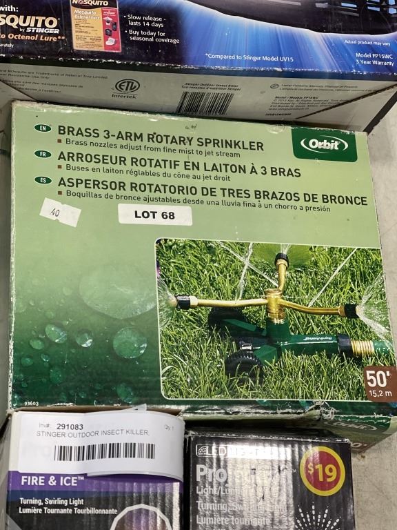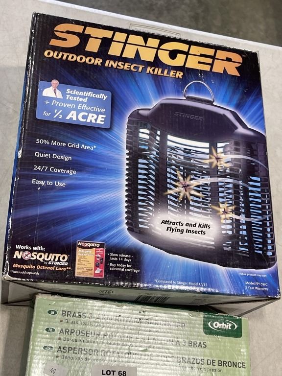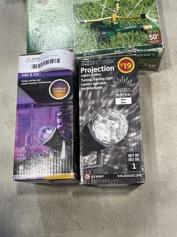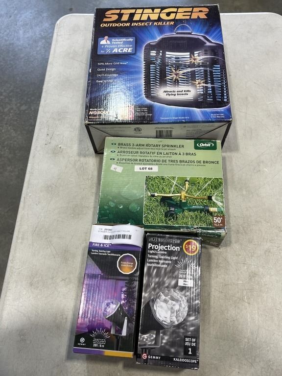 STINGER OUTDOOR INSECT KILLER, SPRINKLER HEAD, AND 2 OUTDOOR PROJECTION LIGHTS