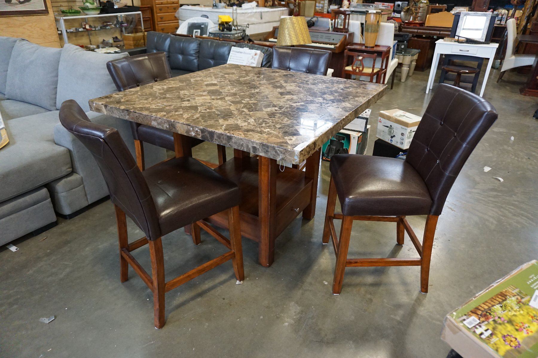 STONE LOOK DINING TABEL WITH 4 STOOLS