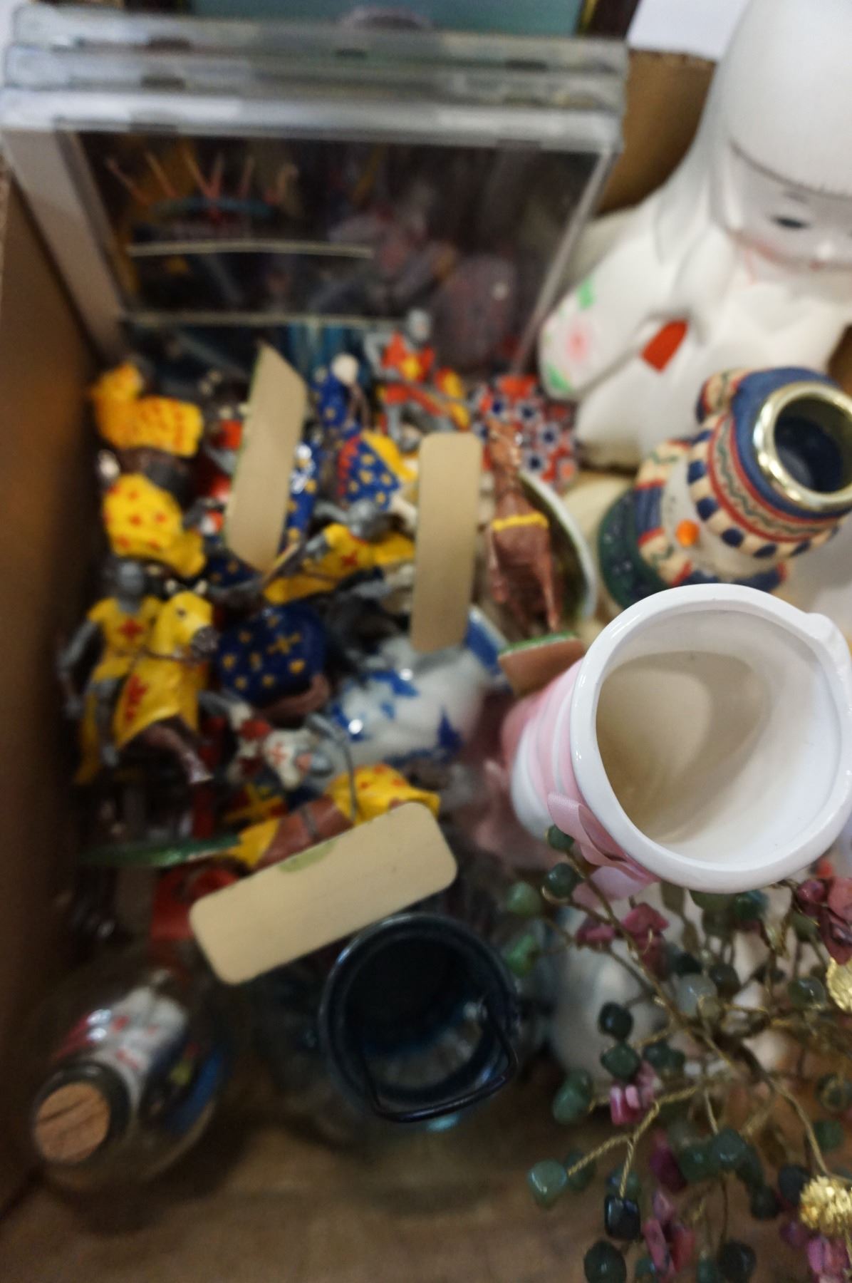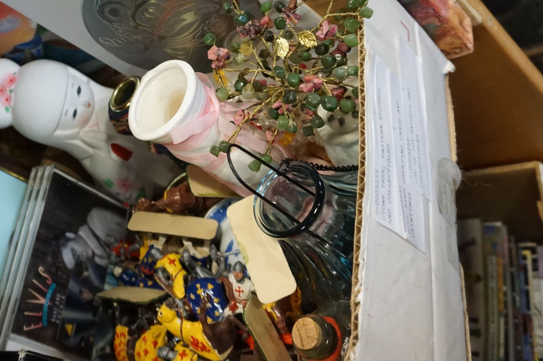 STONE TREE, EASTERN FIGURES, BILL RIED GREETING CARDS AND PAINTINGS AND TOY KNIGHTS AND COLLECTIBLES