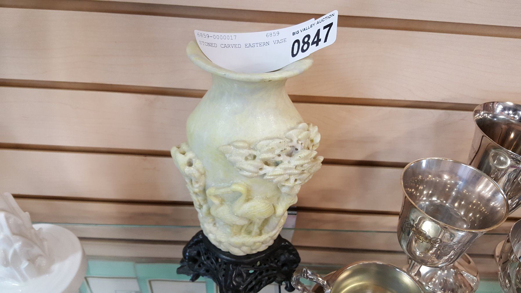 STONED CARVED EASTERN VASE