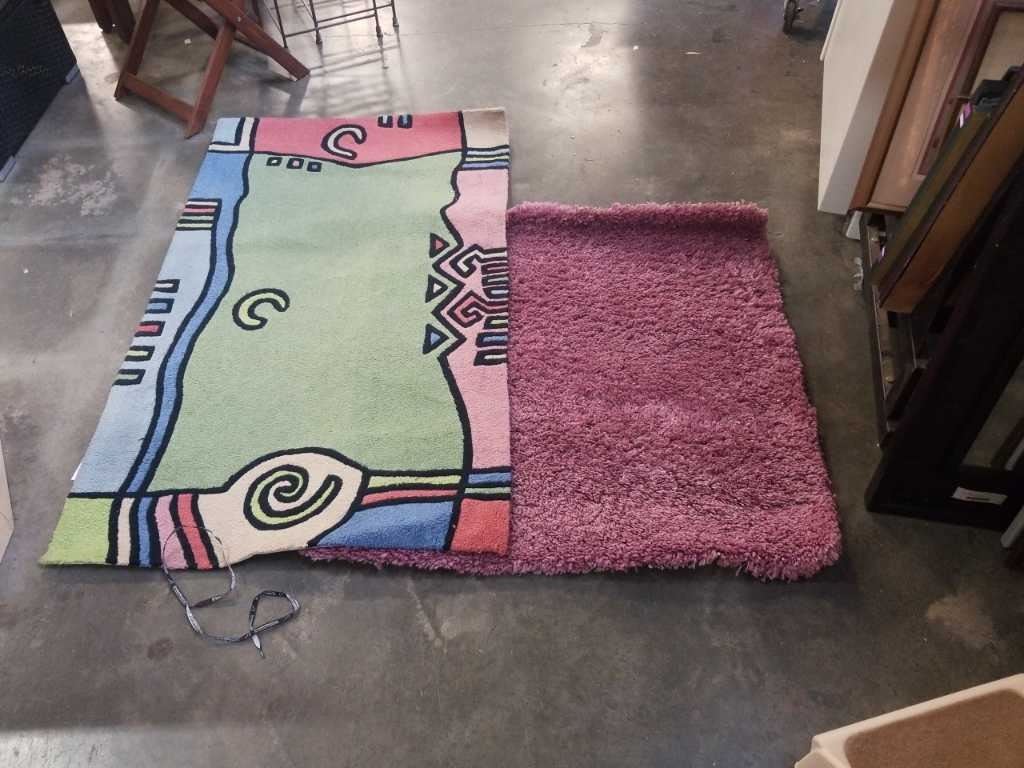 STRIPED AREA CARPET AND PINK AREA CARPET