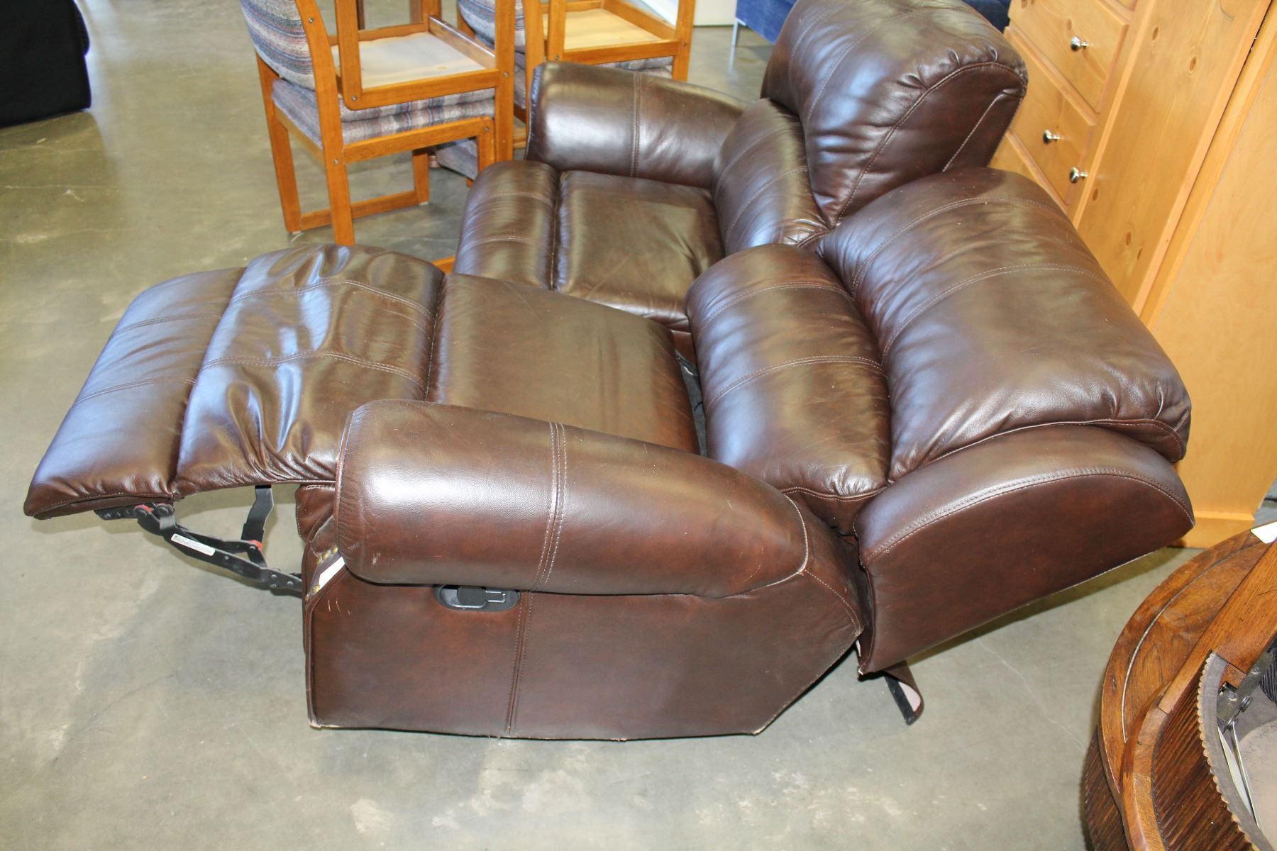 STUDDED BROWN LEATHER DOUBLE RECLINER LOVESEAT
