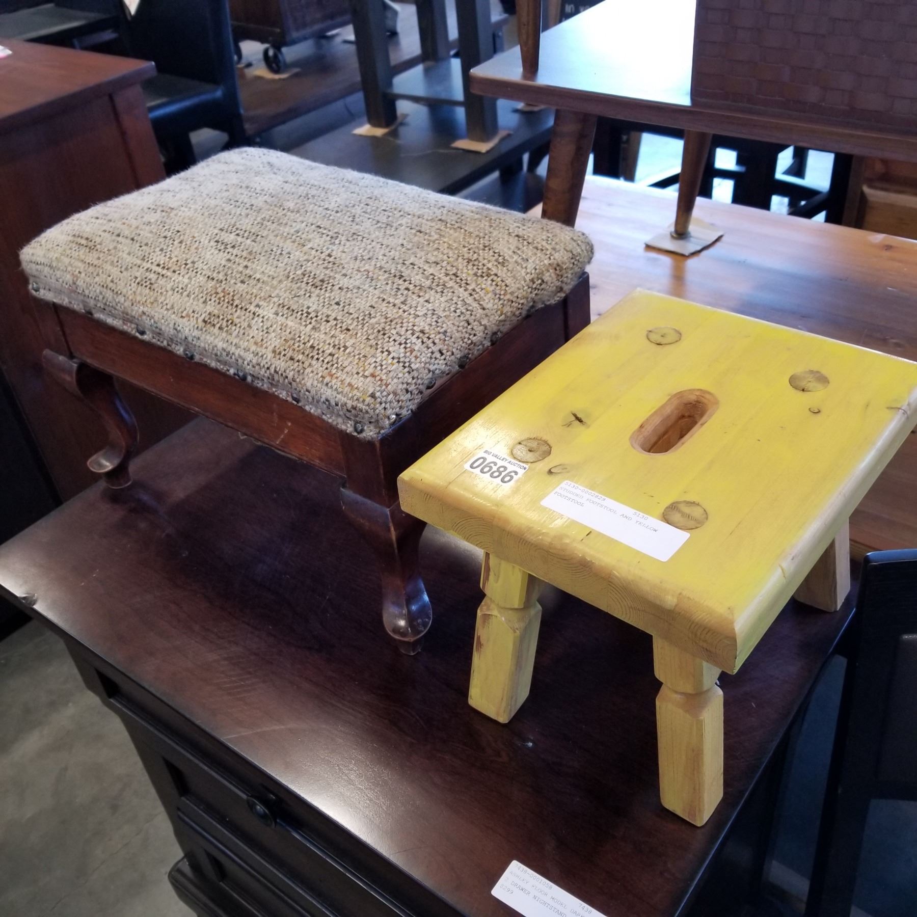 STUDDED FOOTSTOOL AND YELLOW FOOTSTOOL