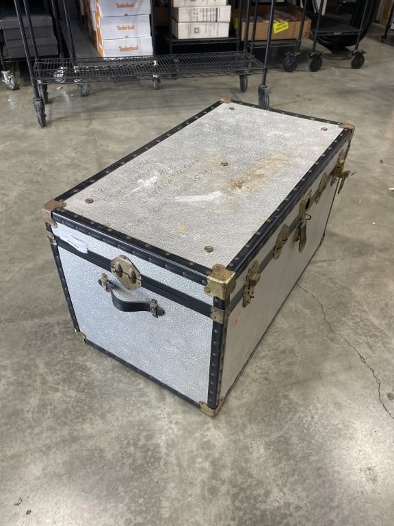 STYLE VINTAGE METAL SIDED STEAMER TRUNK