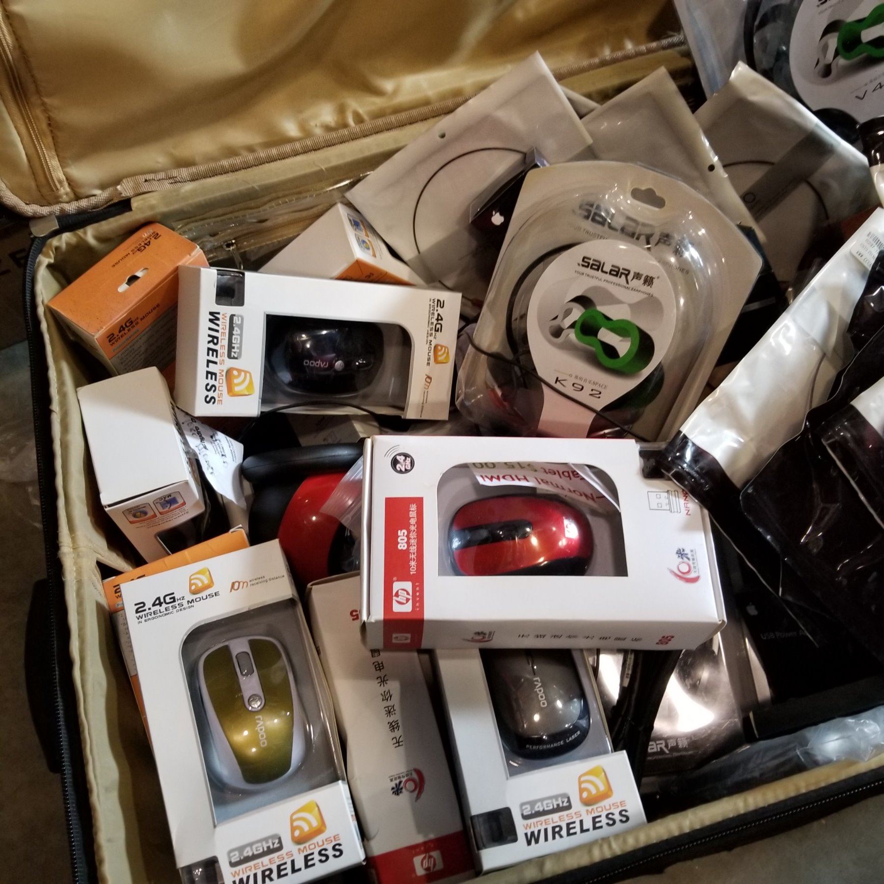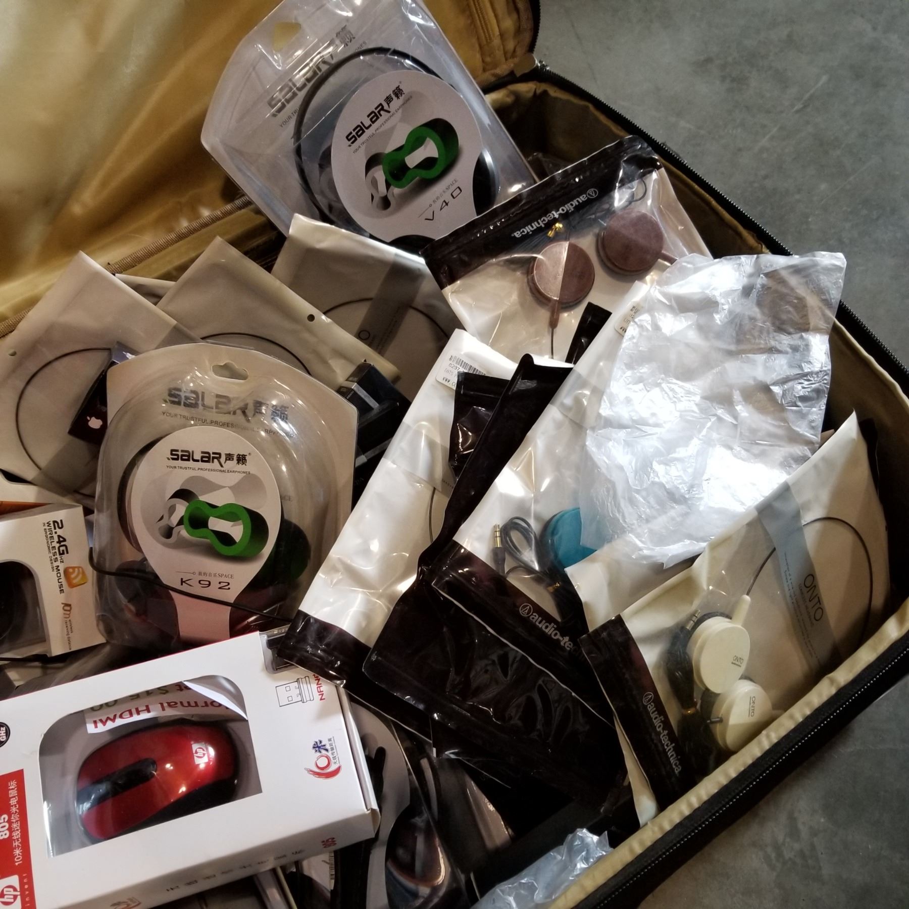 SUIT CASE FULL OF NEW WIRELESS MICE, EARBUDS, AND MORE