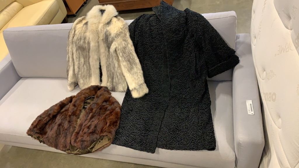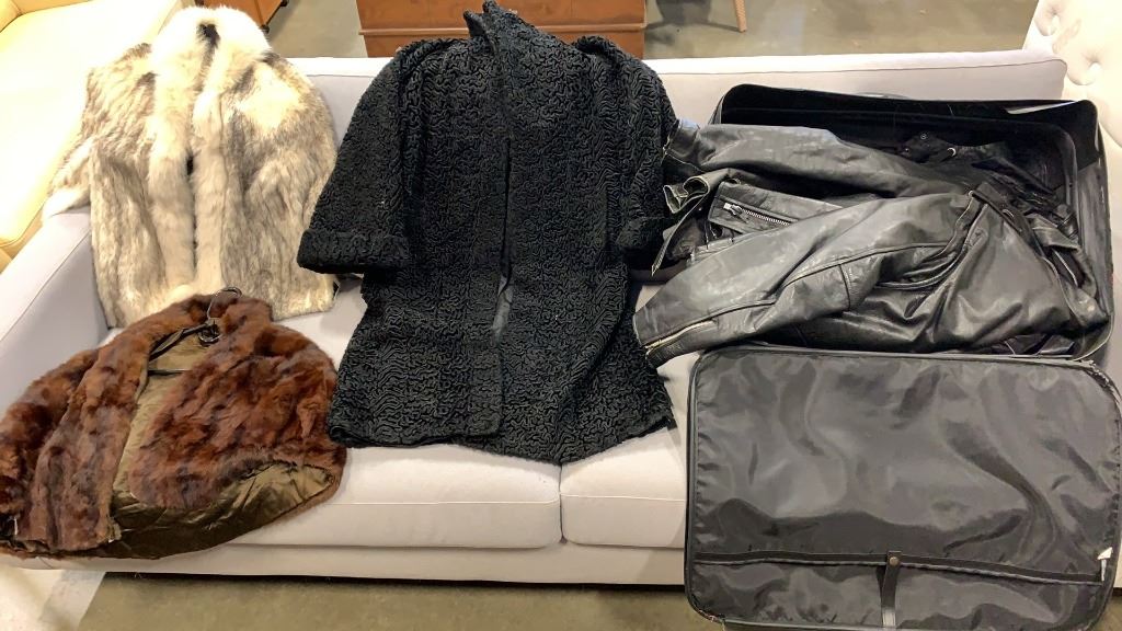 SUITCASE FULL OR LEATHER JACKETS, FUR COAT AND SHAWL ETC
