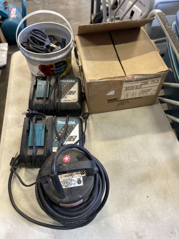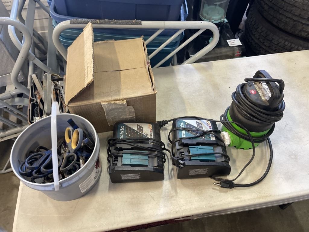 SUMP PUMP, 2 MAKITA CHARGERS, SCISSORS AND MORE