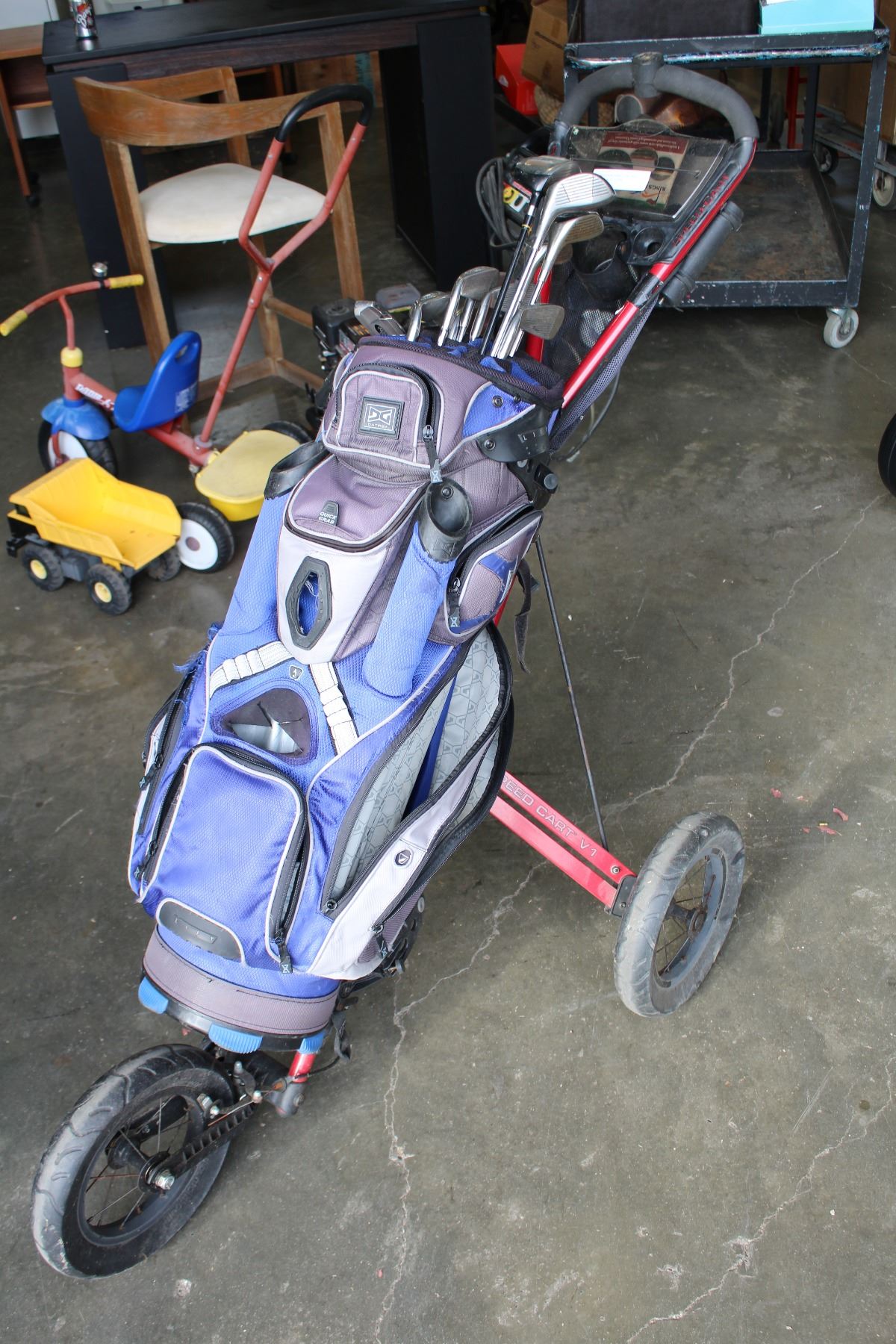 SUN MOUNTAIN SPEED CART AND GOLF BAG WITH CLUBS