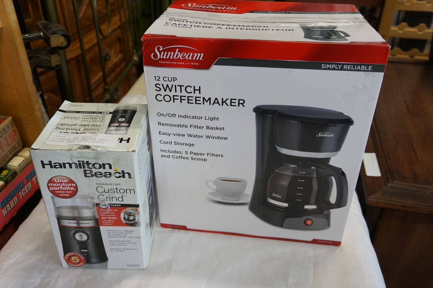 SUNBEAM 12 CUP SWITCH COFFEEMAKER AND HAMILTON BEACH CUSTOM GRIND COFFEE GRINDER