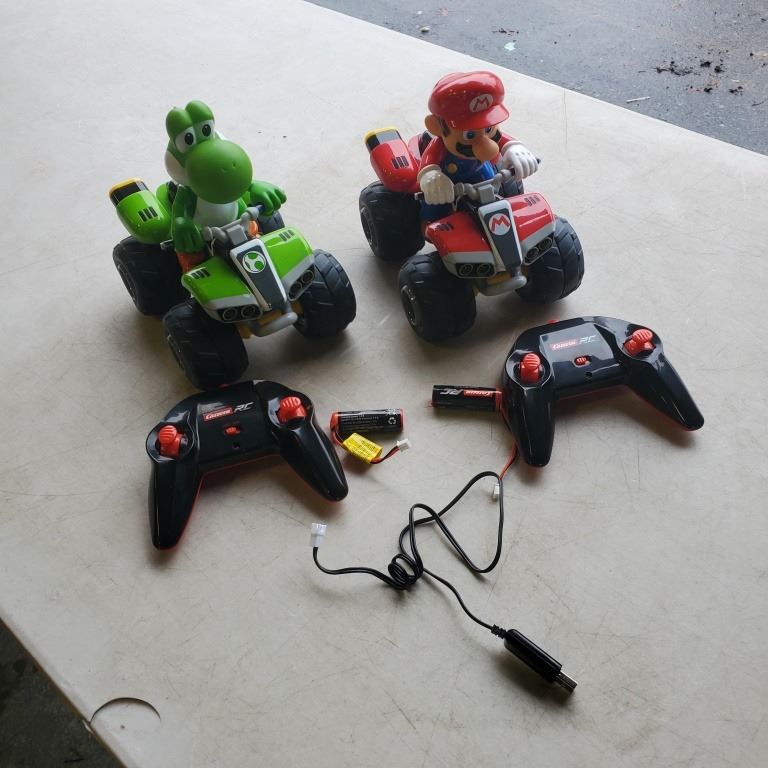 SUPER MARIO AND YOSHI 1:20 SCALE RC VEHICLES WITH BATTERYS, CHARGER AND CONTROLLERS RETAIL $291 TESTED AND WORKING