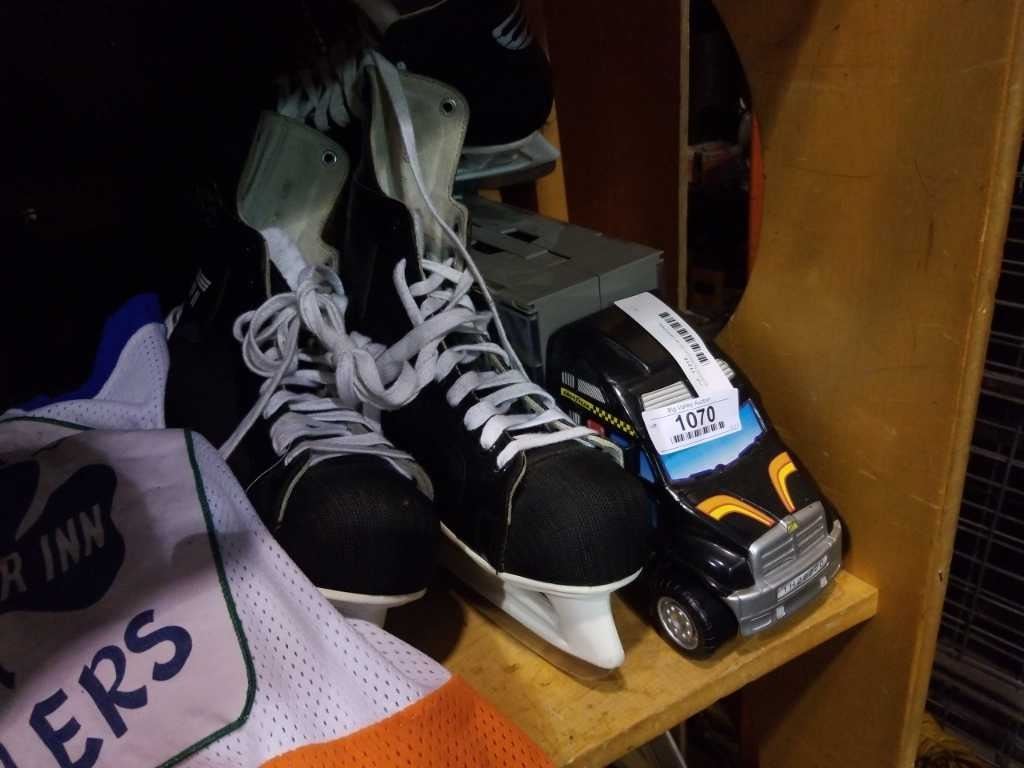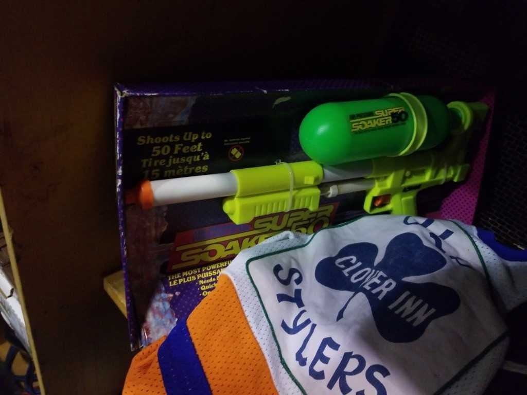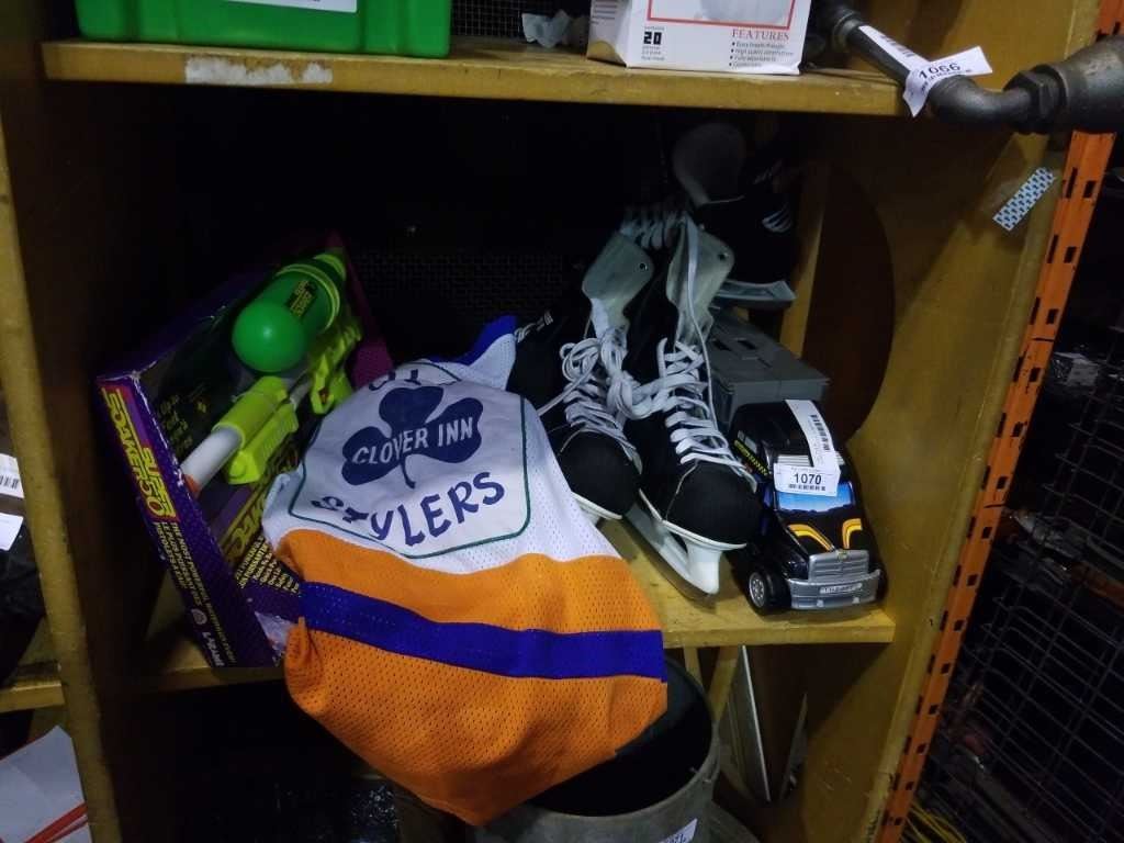 SUPER SOAKER 50 IN ORIGINAL PACKAGING, GOODYEAR TRUCK TOY CAR STORAGE AND CCM ICE SKATES