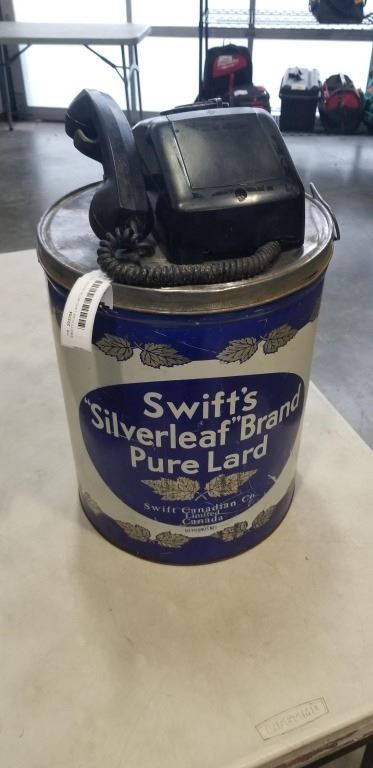 SWIFTS PURE LARD METAL BUCKET AND VINTAGE ROTARY PHONE