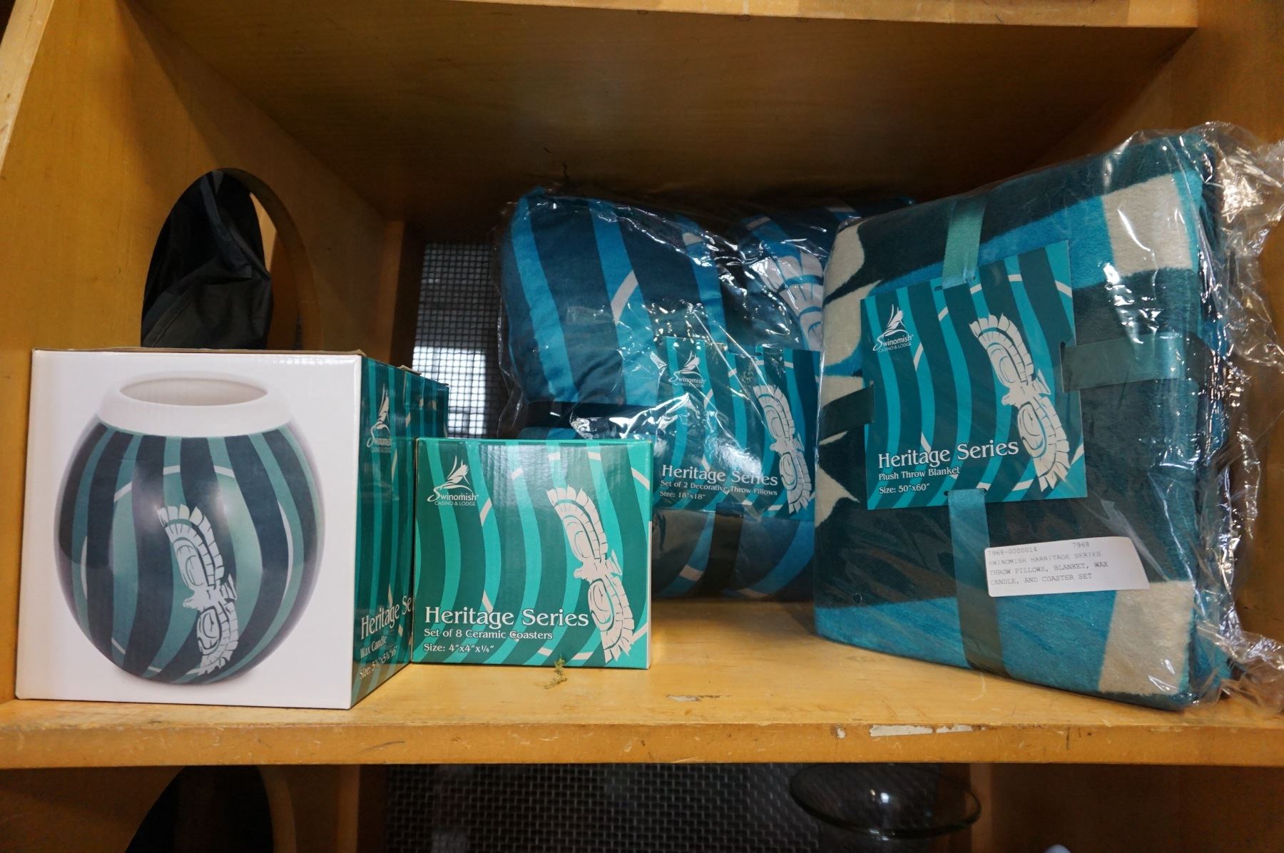 SWINOMISH HERITAGE SERIES THROW PILLOWS, BLANKET, WAX CANDLE, AND COASTER SET