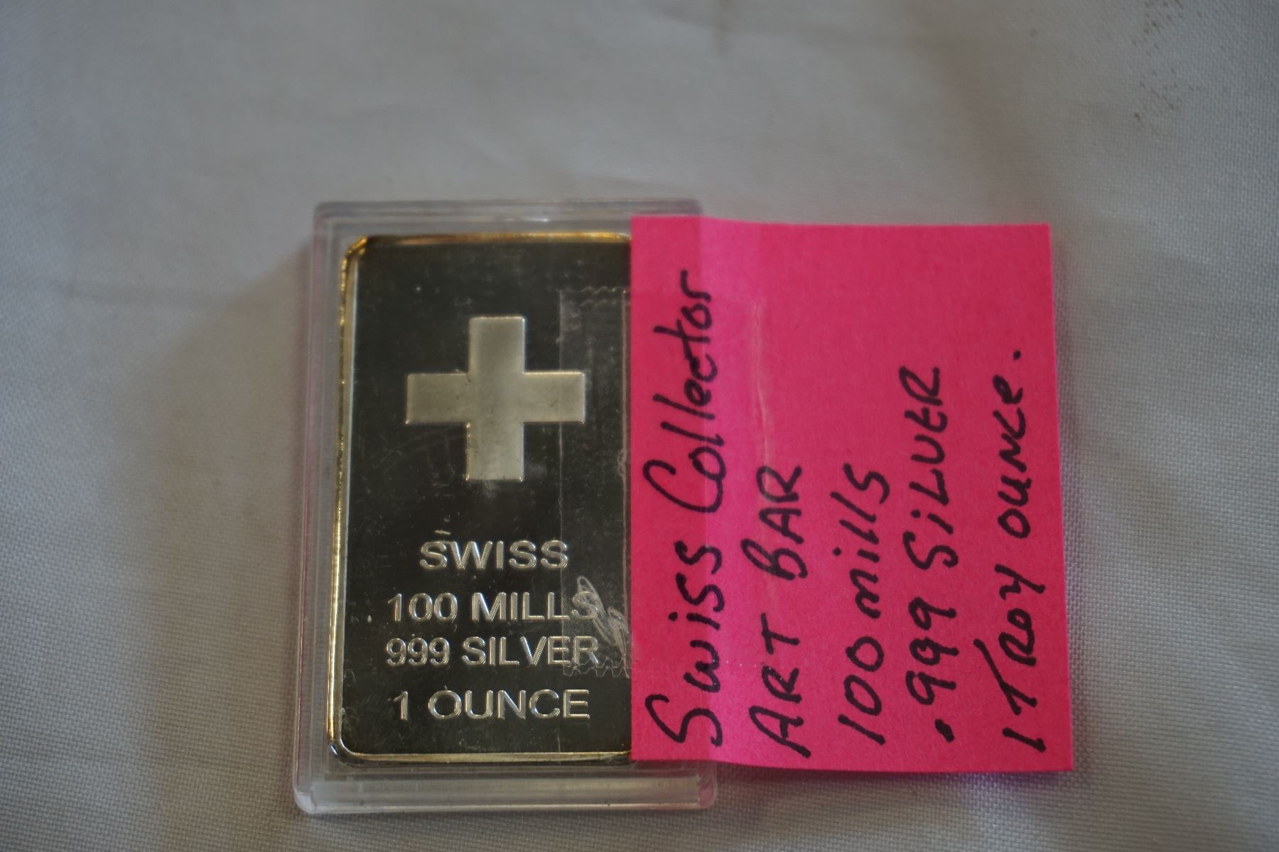 SWISS COLLECTOR ART BAR 100 MILLS .999 SILVER 1 TROY OUNCE