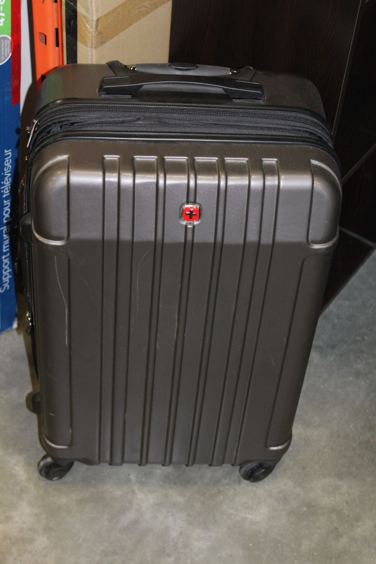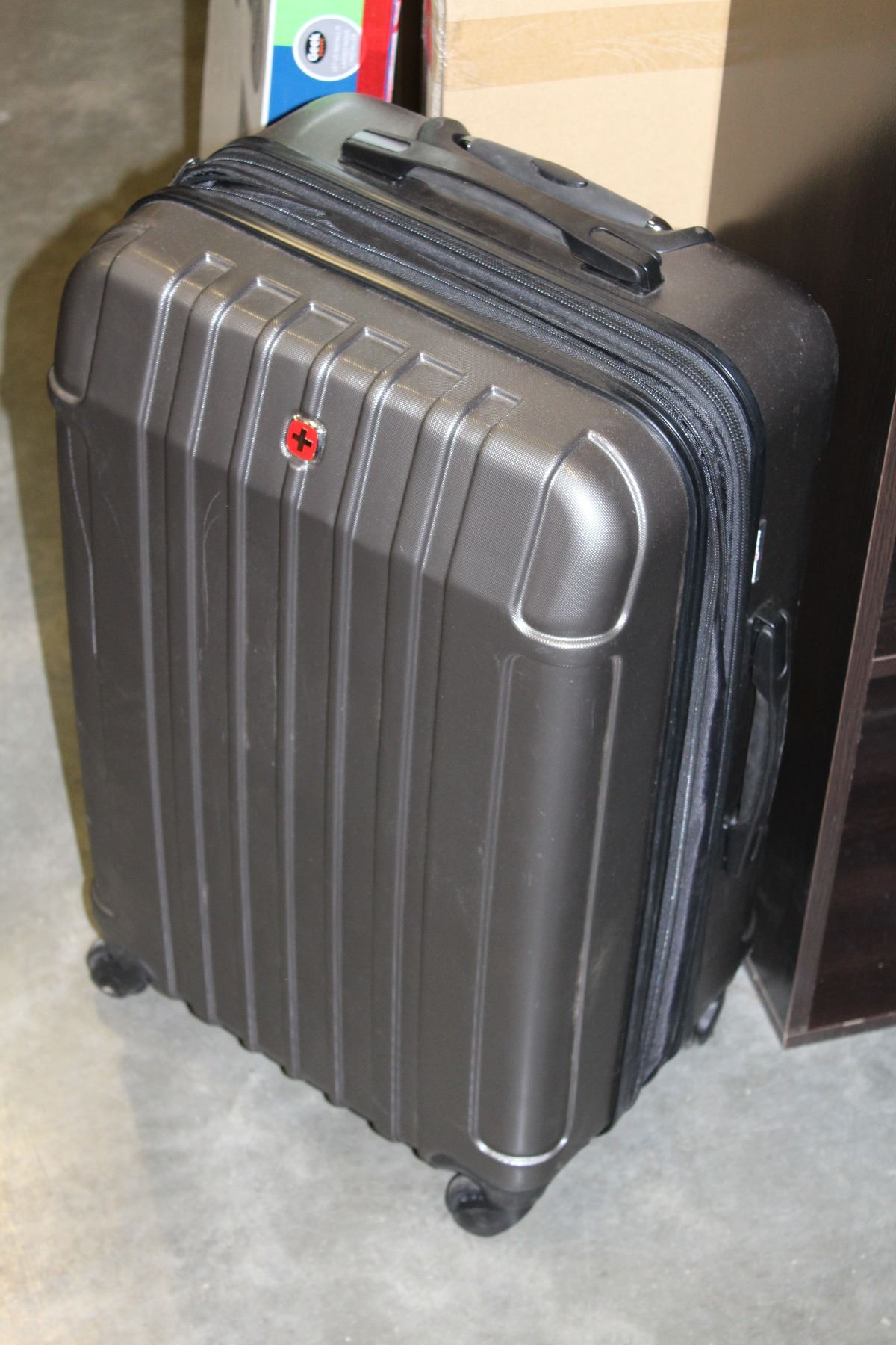 SWISS GEAR GREY HARD SIDE ROLLING TRAVEL SUITCASE