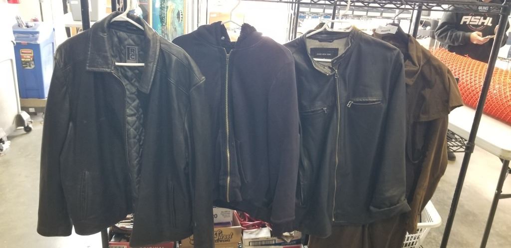 SYDNEY OILSKIN SIZE MEDIUM JACKET AND 3 MENS JACKETS / SWEATERS